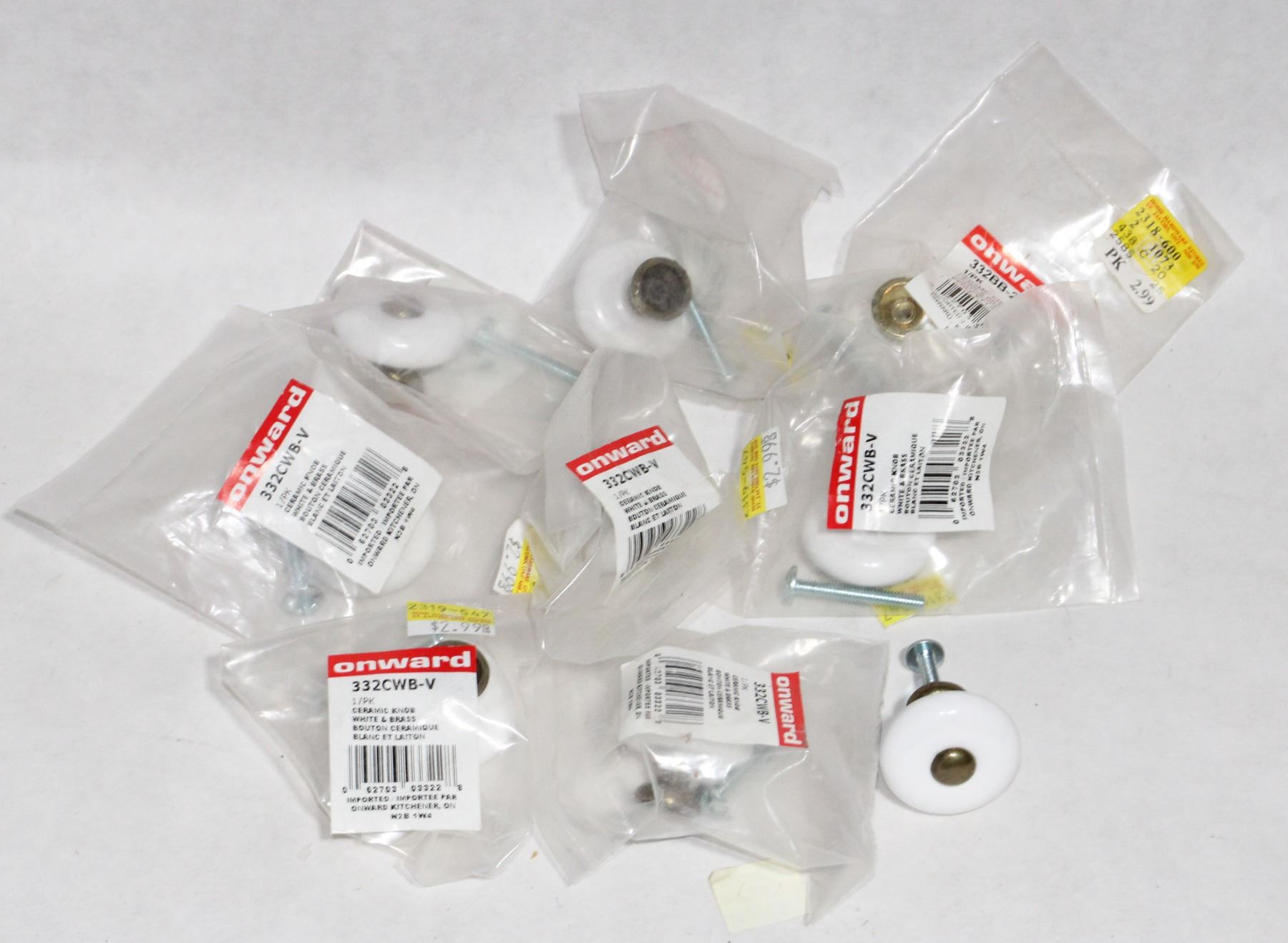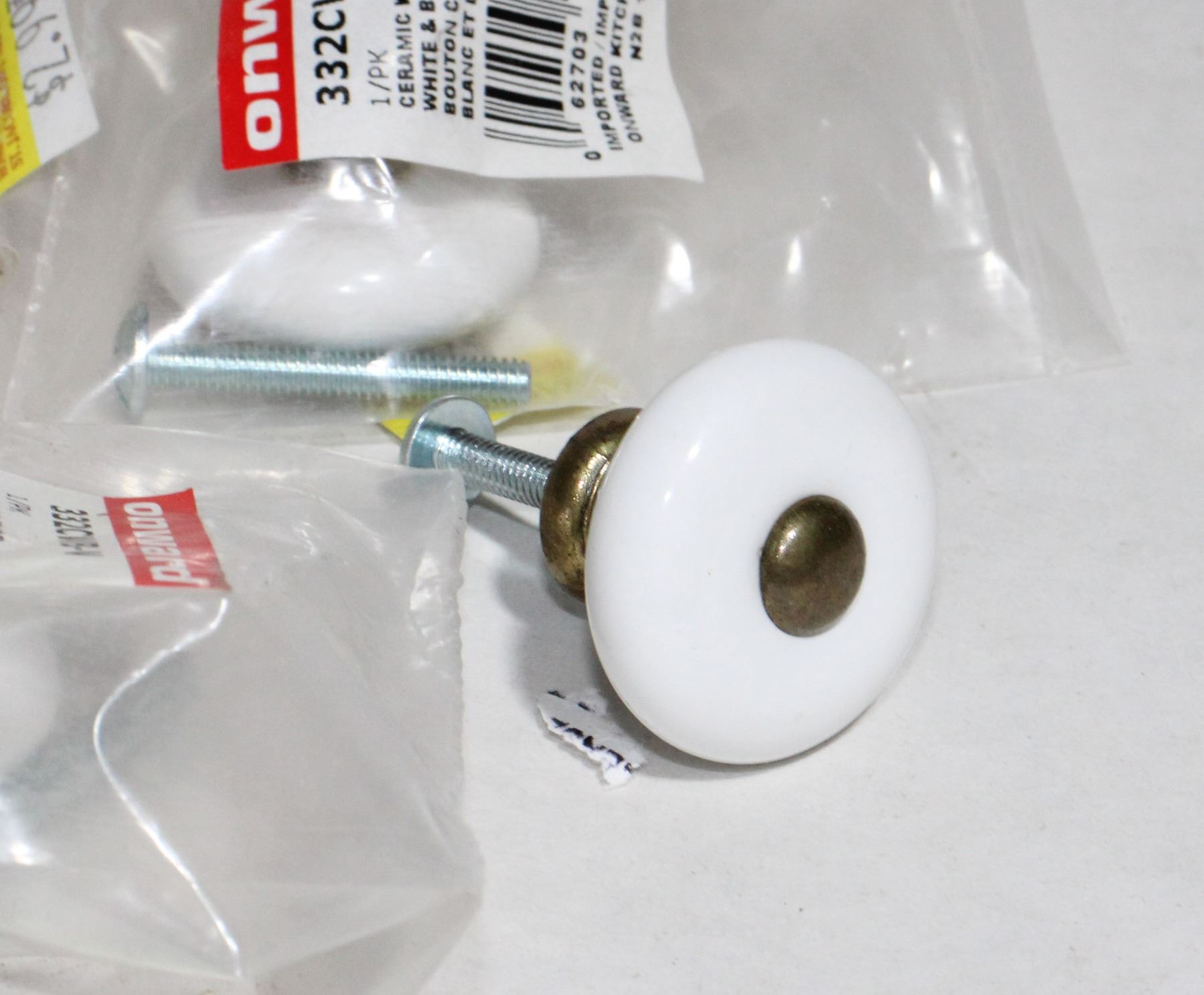 TRAY OF CERAMIC AND BRASS FINISH CABINET KNOBS
