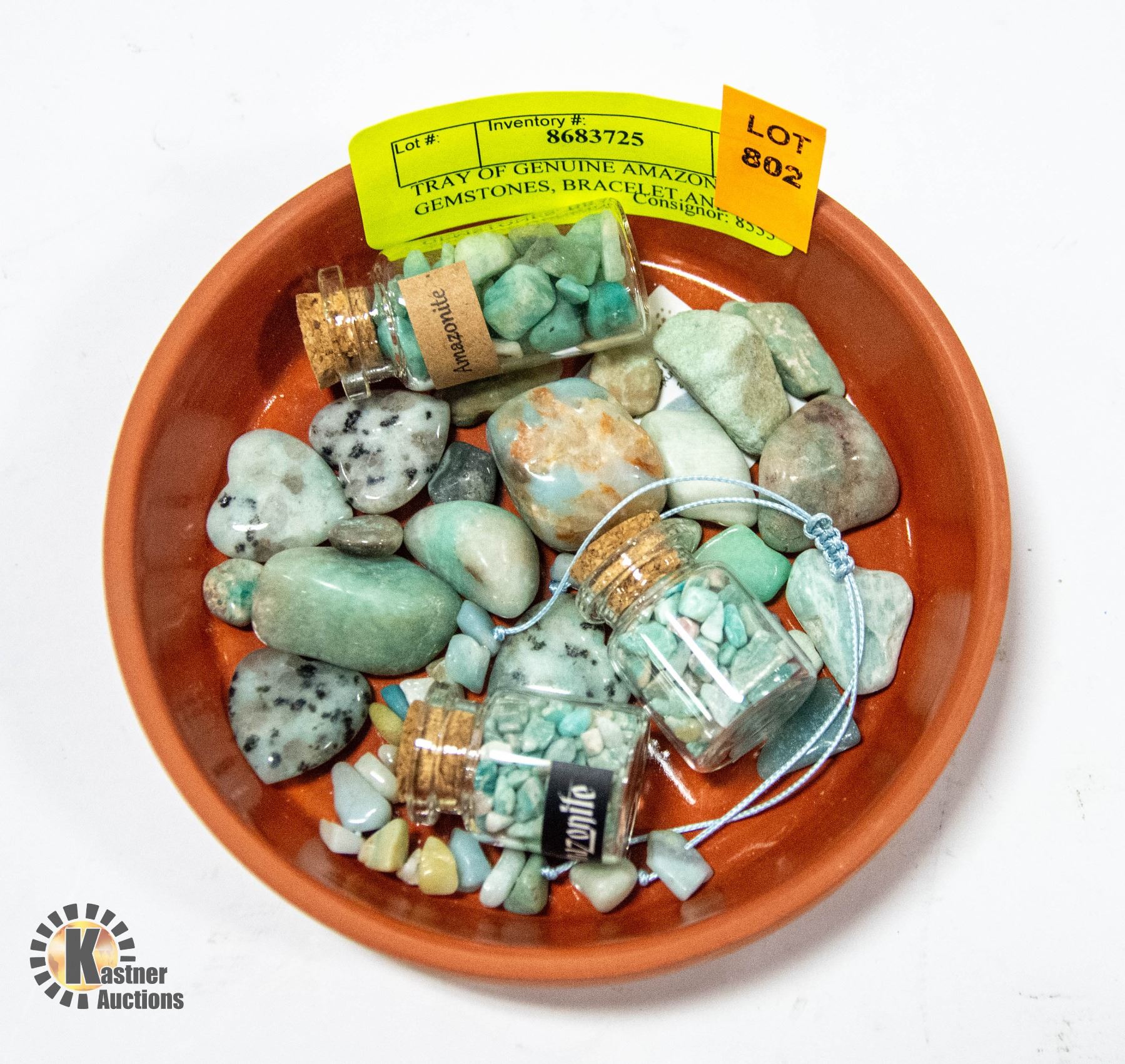 TRAY OF GENUINE AMAZONITE GEMSTONES, BRACELET AND