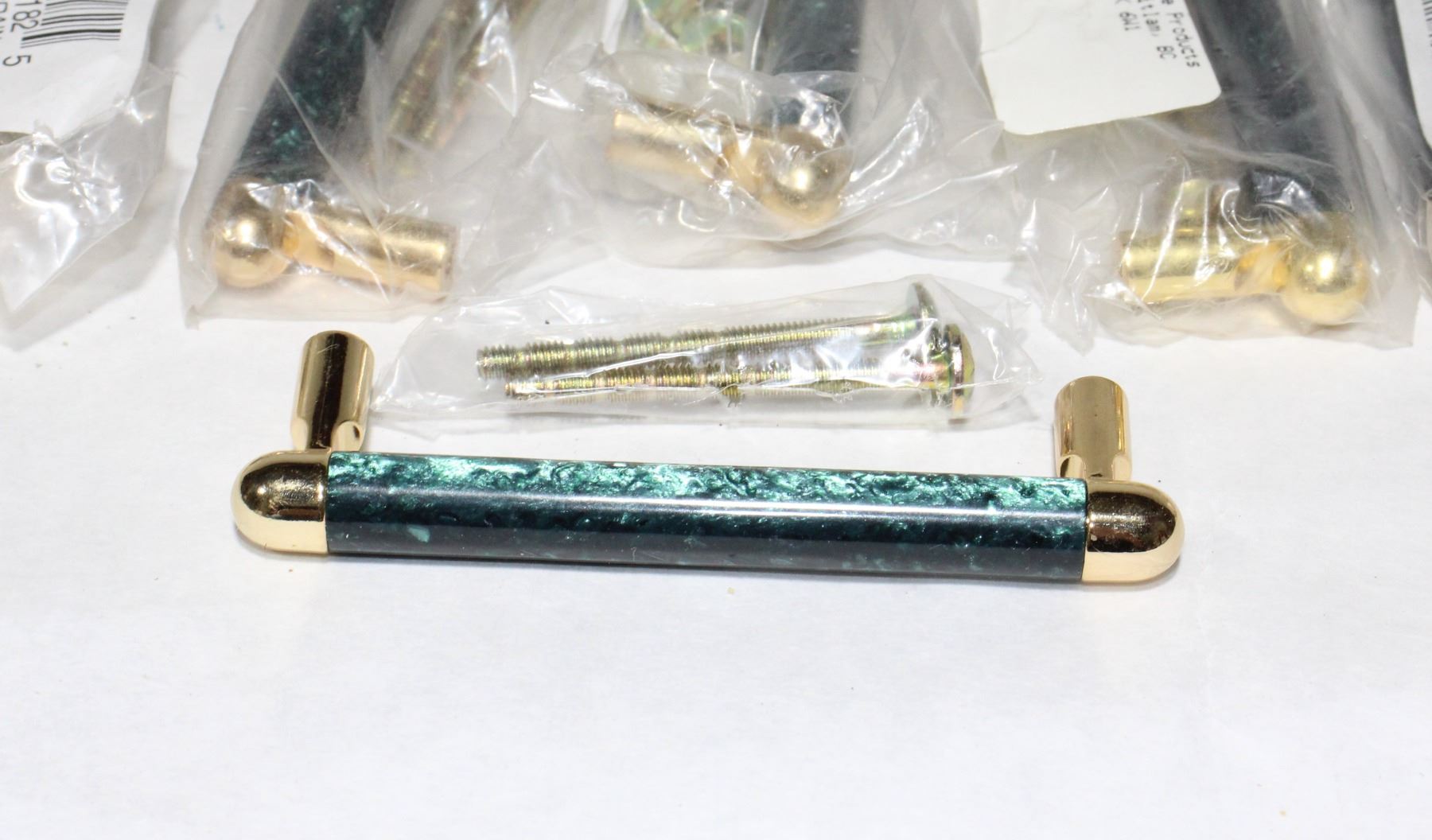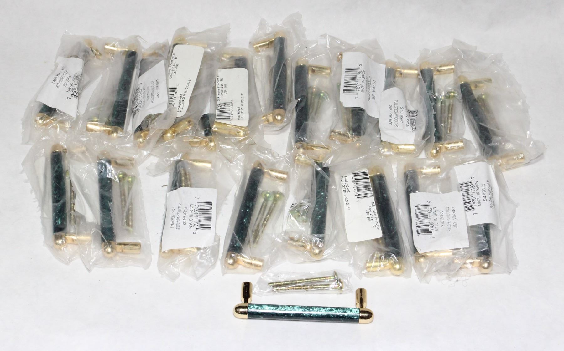 TRAY OF GREEN/ BRASS FINISH CABINET PULLS 3"