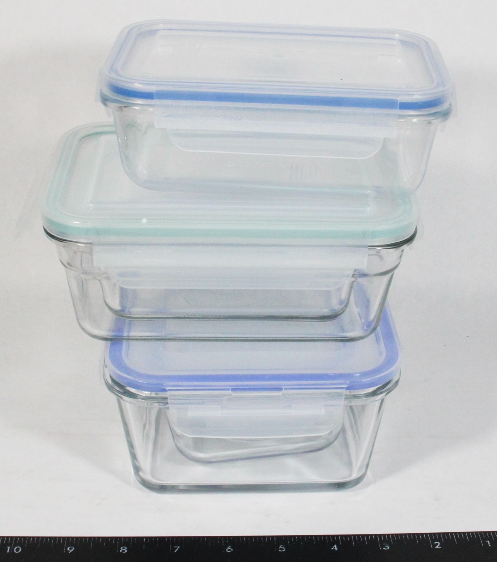 TRAY OF LOCKING LID GLASS CONTAINERS