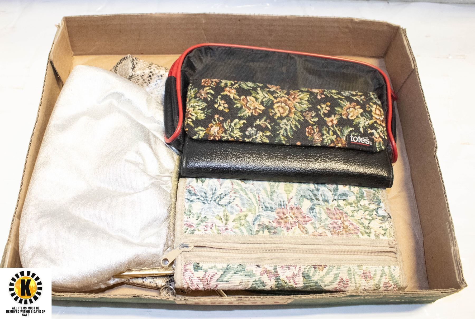 TRAY OF MAKE-UP BAGS, CLOTH WALLETS