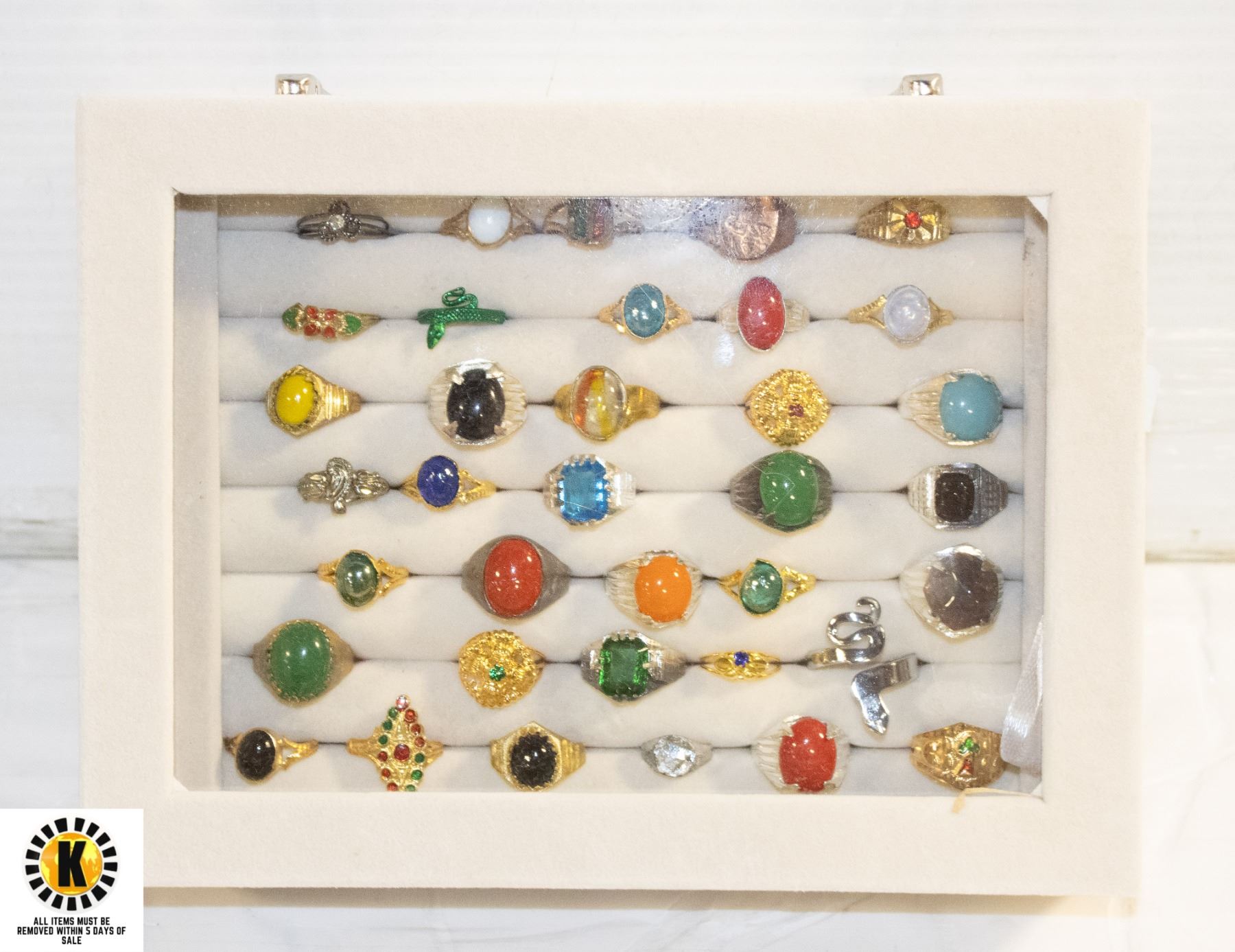 TRAY OF NEW FASHION RINGS IN VELVET HOLDER