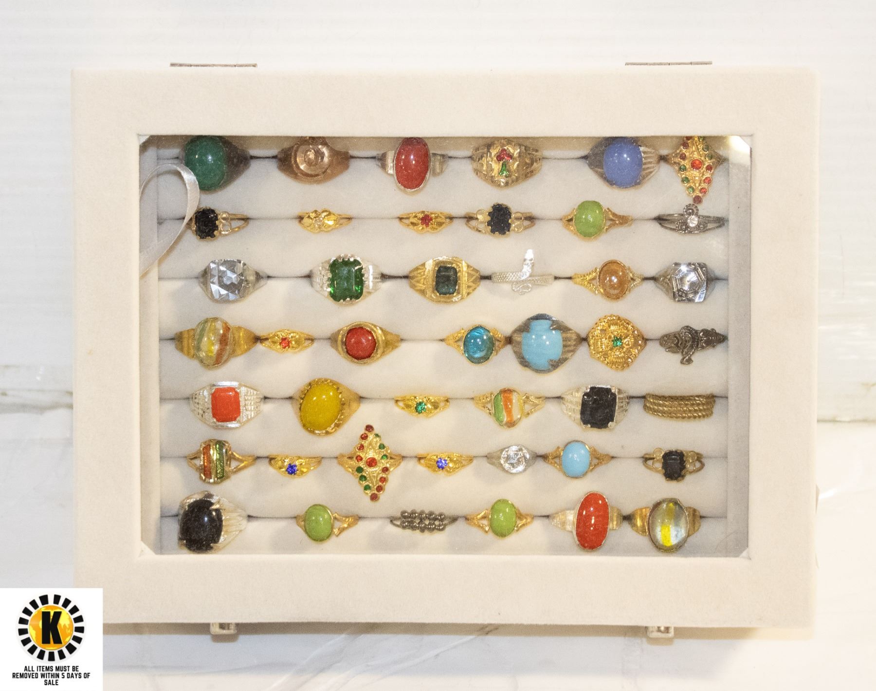 TRAY OF NEW FASHION RINGS IN VELVET HOLDER