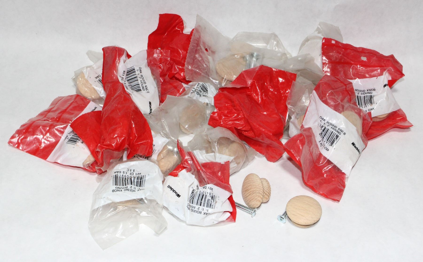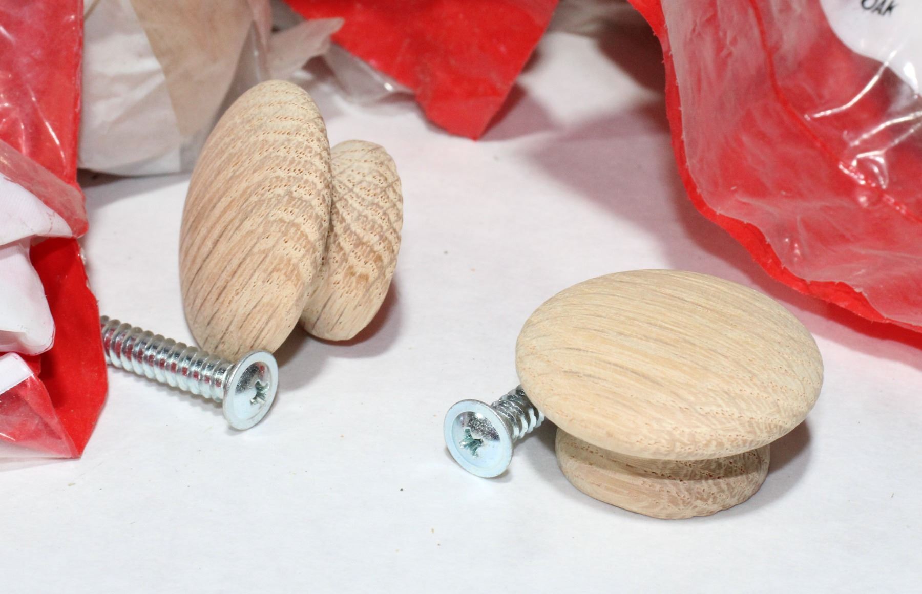 TRAY OF OAK 1-1/2" ROUND CABINET KNOBS