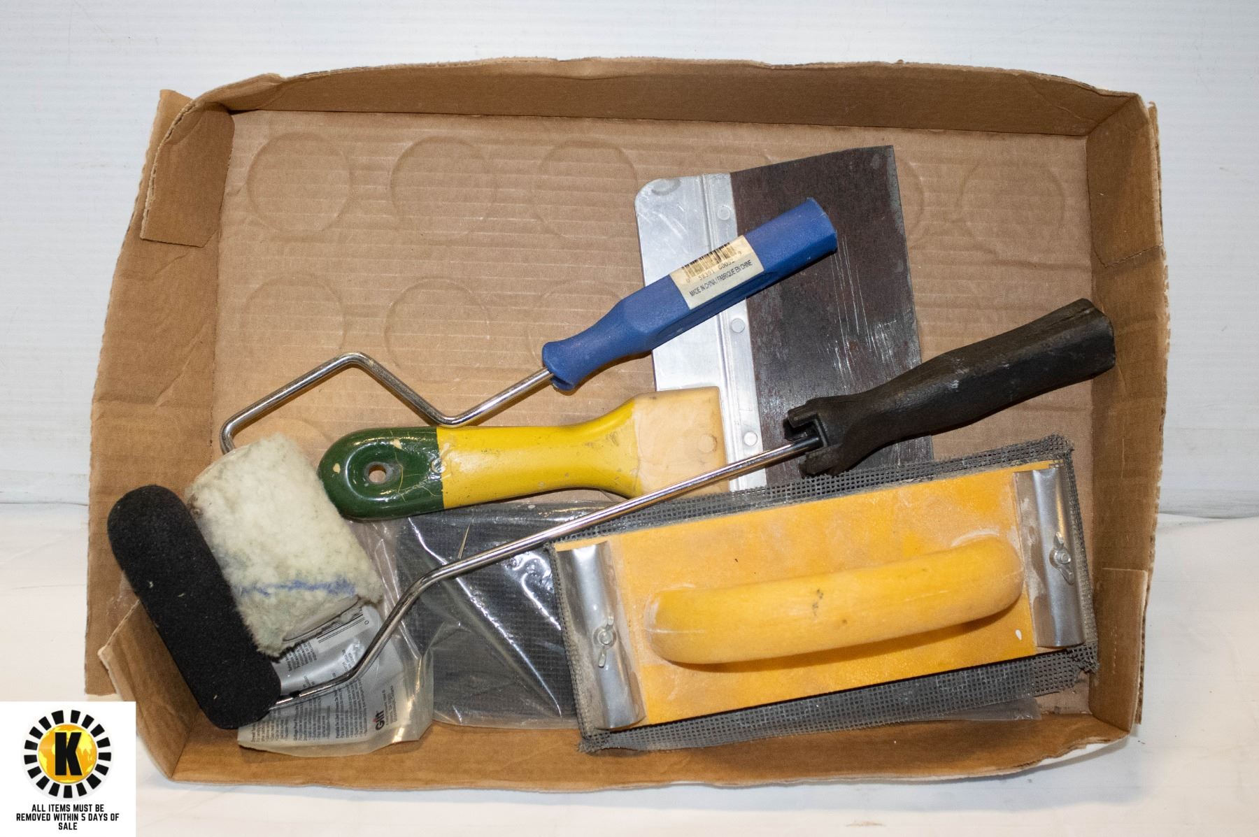 TRAY OF PAINT & DRYWALL TOOLS