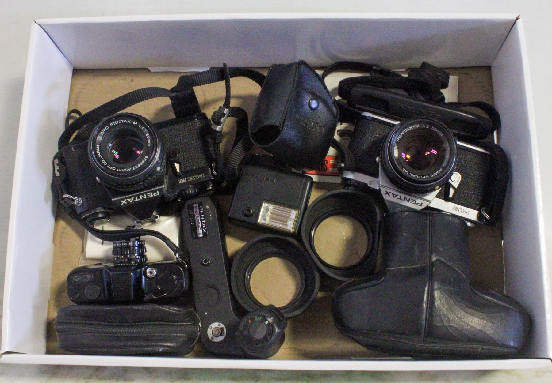 TRAY OF PENTAX CAMERAS, ME SUPER, WINDER