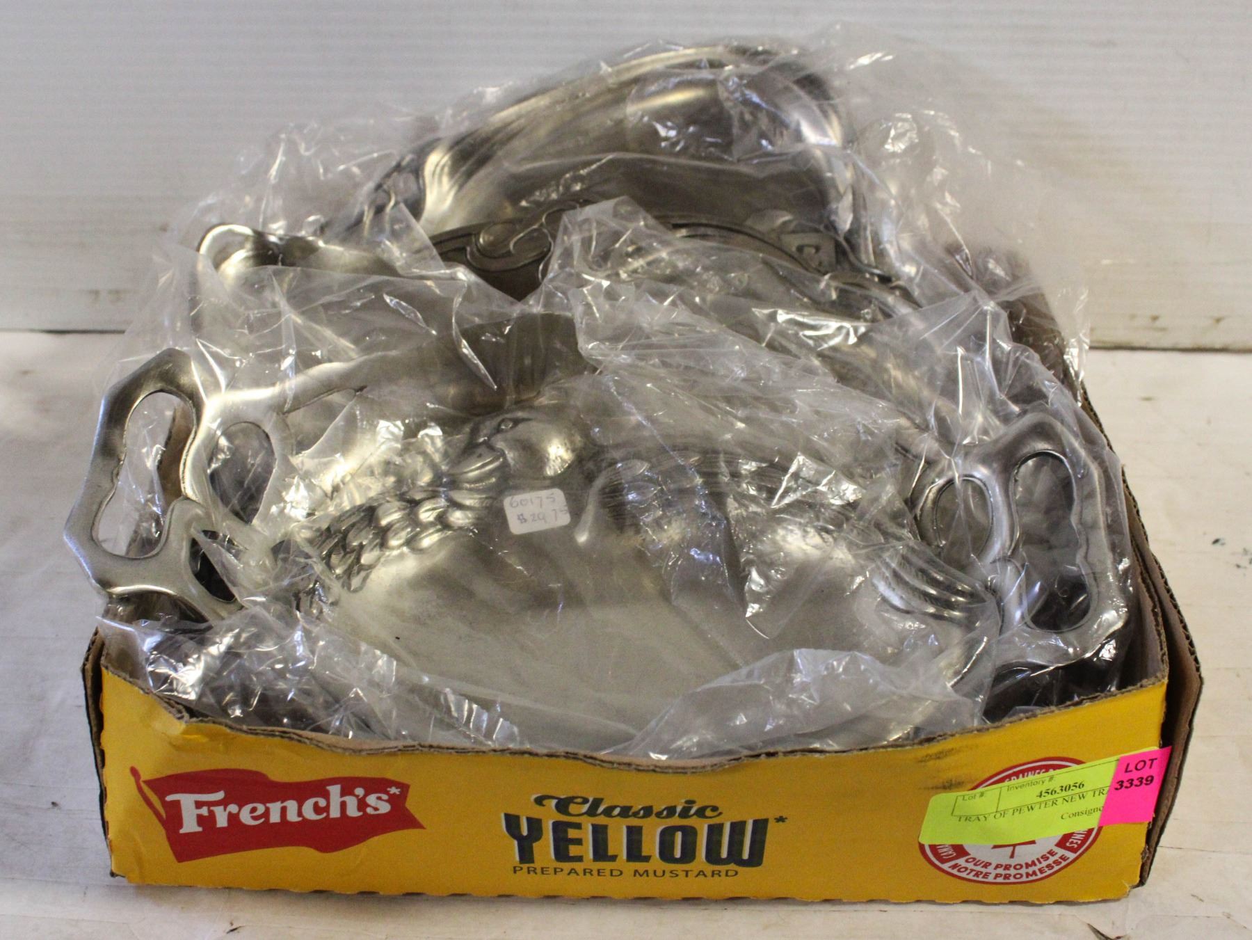 TRAY OF PEWTER NEW TRAYS