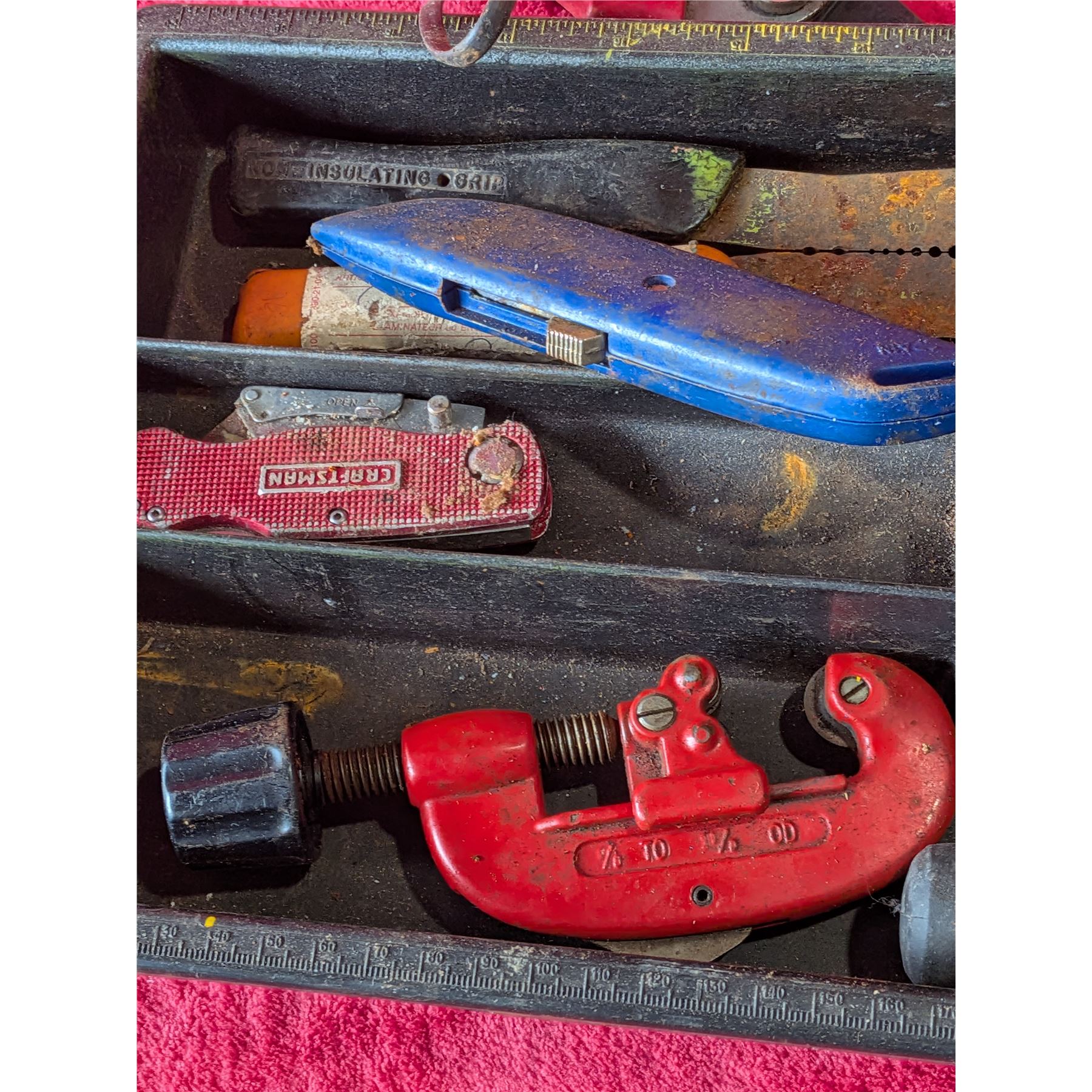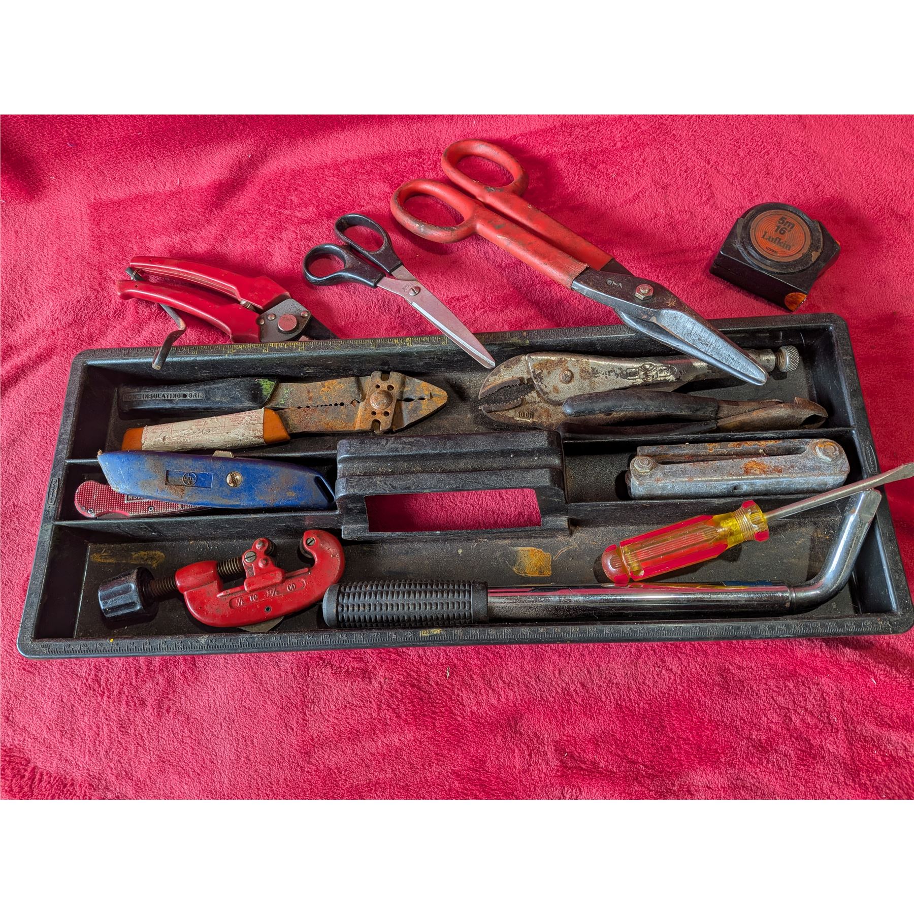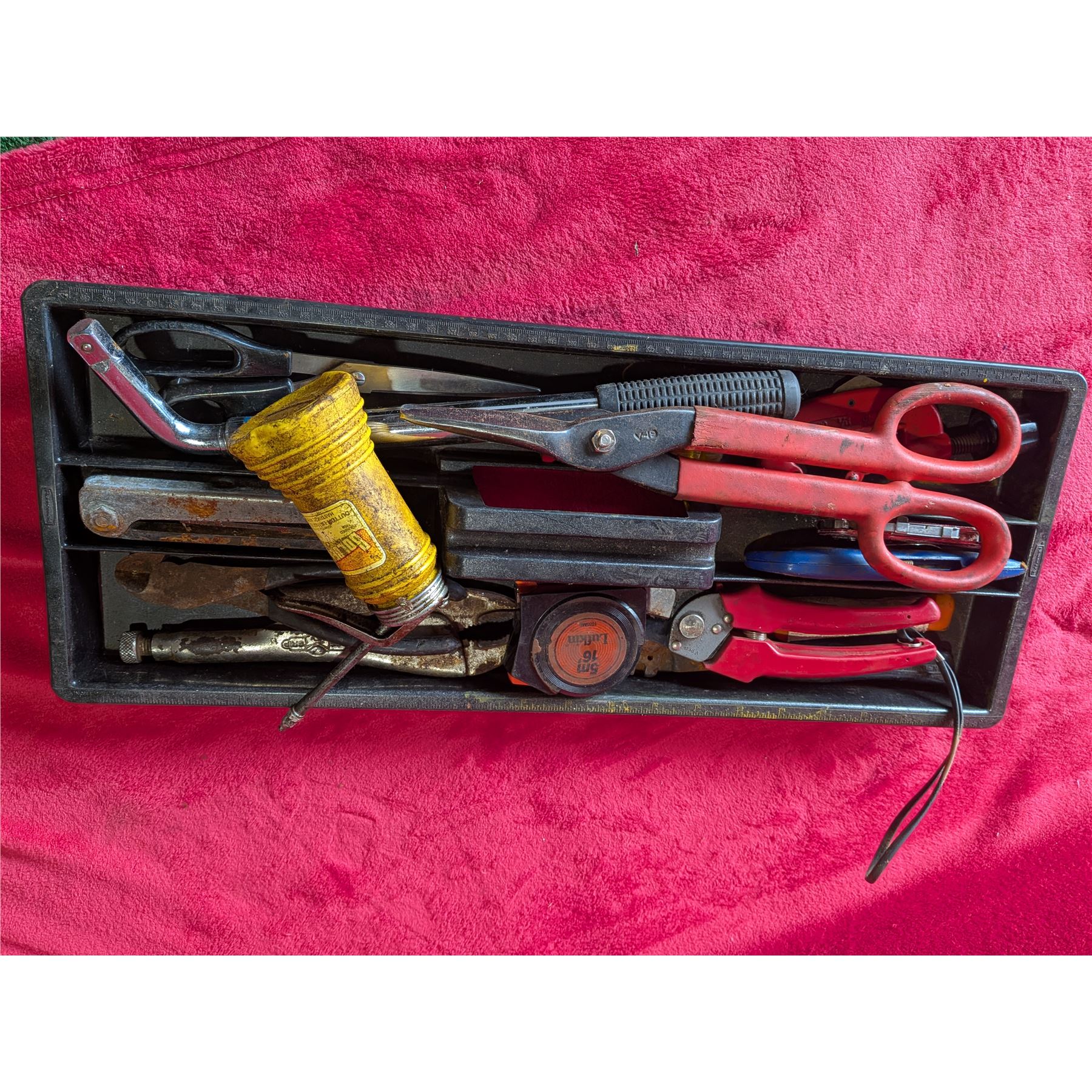 TRAY OF TOOLS PRIMARILY CUTTERS, 5m/26' LUFKIN TAPE MEASURE, Small oil can & more.