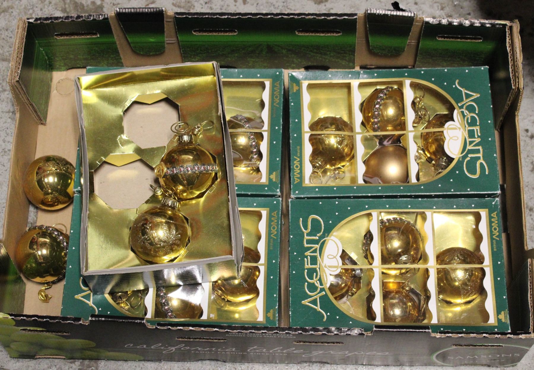 TRAY OF VINTAGE GOLD GLASS ORNAMENTS