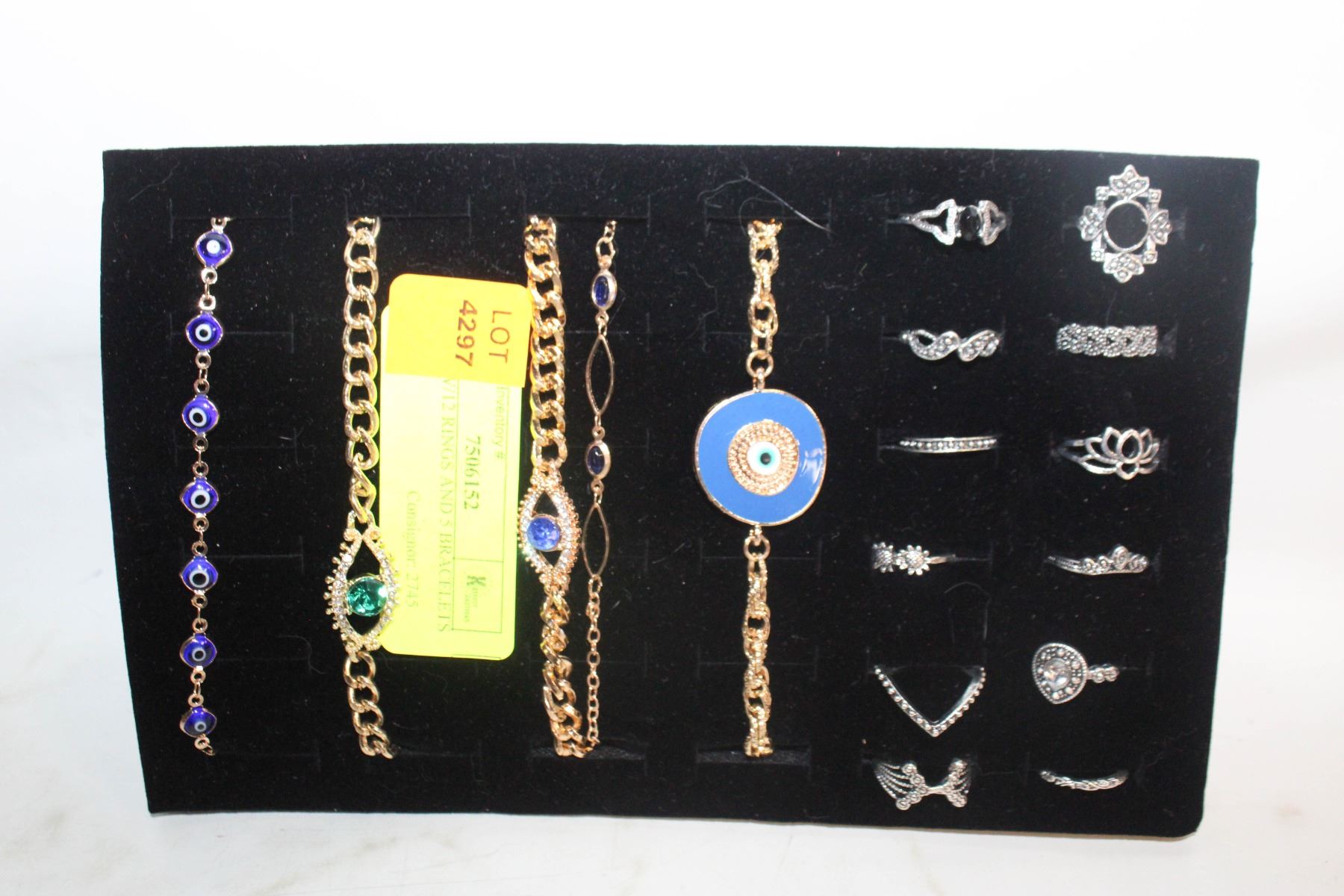 TRAY W/12 RINGS AND 5 BRACELETS SET