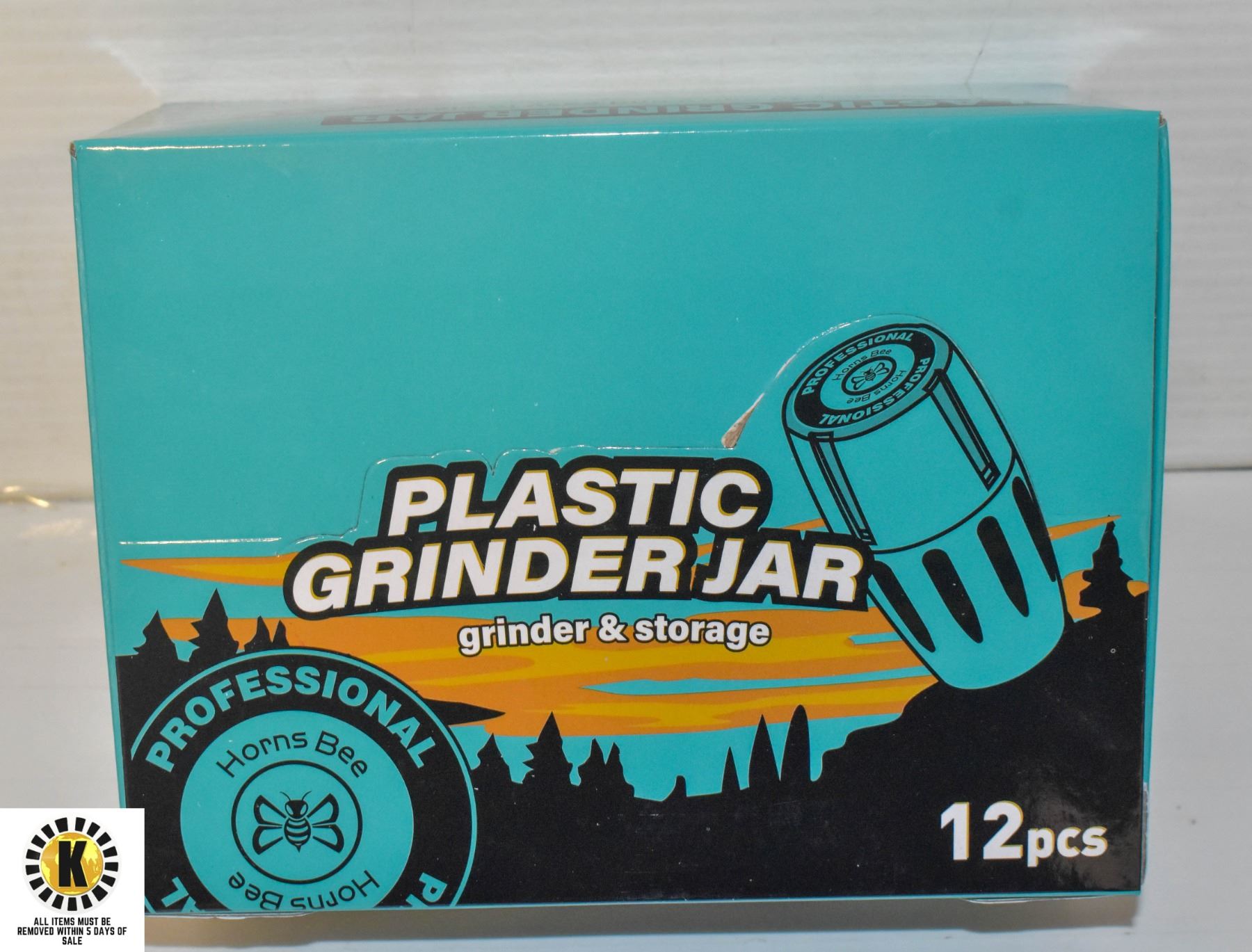 TRAY WITH 12 NEW PLASTIC GRINDER JARS