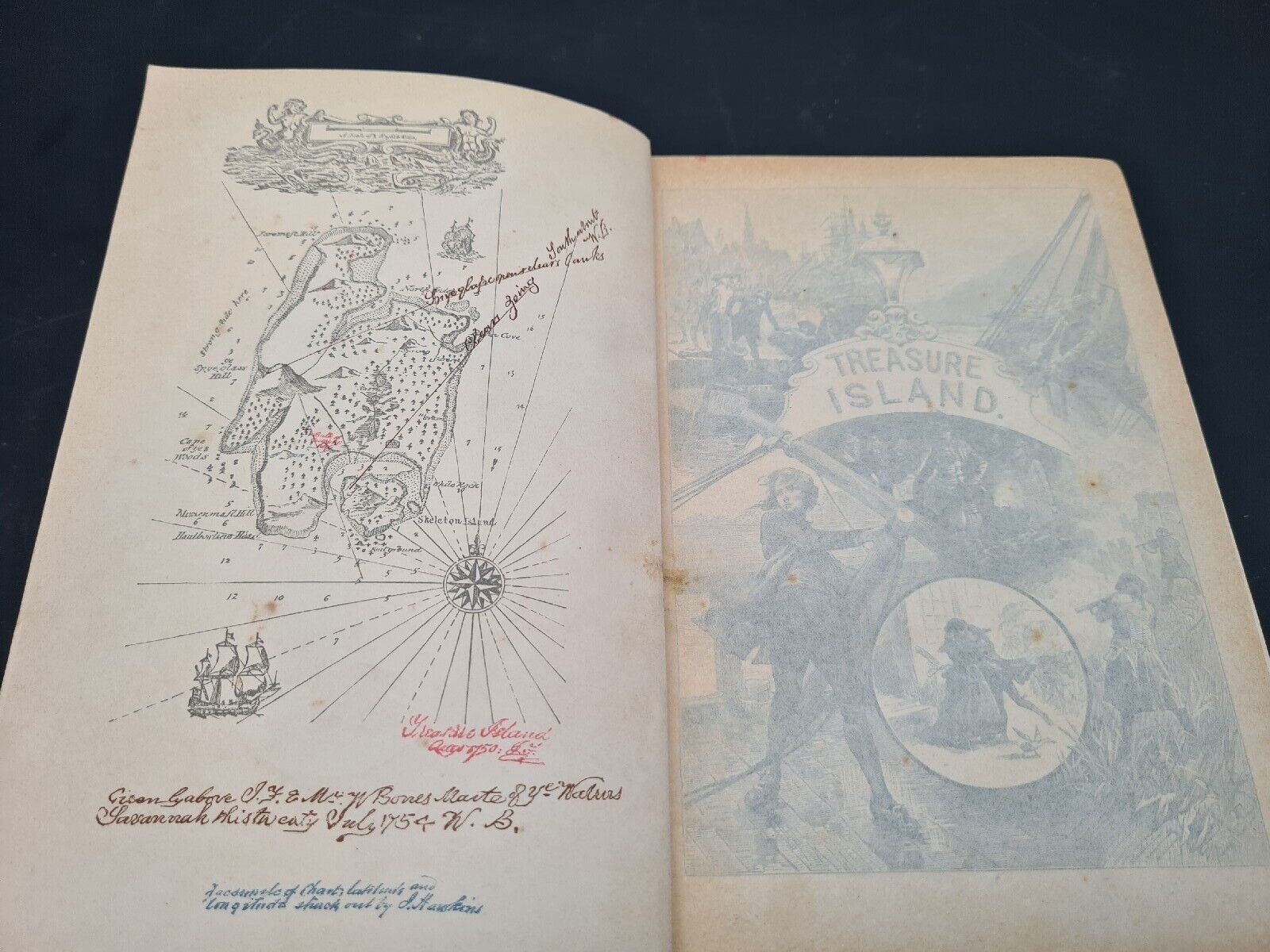 1st Illustrated Edition 1885. Twenty Five full plate engravings and a map. Early illustrated Treasure Islands are very uncommon. Bound in the original decorative cloth.