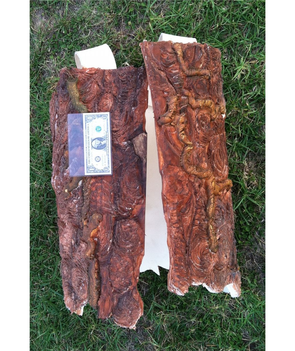 This is a very cool and realistic looking wearable tree trunk with intricate bark costume. It took a team of artisans a week or more to make this. The hand carving is off the charts in person. Unsure of original use.