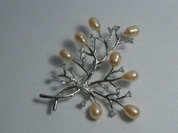 TREE PEACH PEARL CZ BROOCH AUTHENTIC PHILIPPINE PEARL M **|**|** TREE PEACH PEARL CZ BROOCH AUTHENTIC PHILIPPINE PEARL METAL SILVER ; MSRP: $150