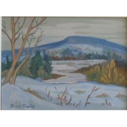 TREMBLAY, Fernand. "Lac Rossy, Mont-Tremblant". Huile sur panneau, signée. Signée et titrée verso. Oil on board, signed. Signed and titled verso. 12" x 16" - 30.4cm x 40.6cm. $250/350