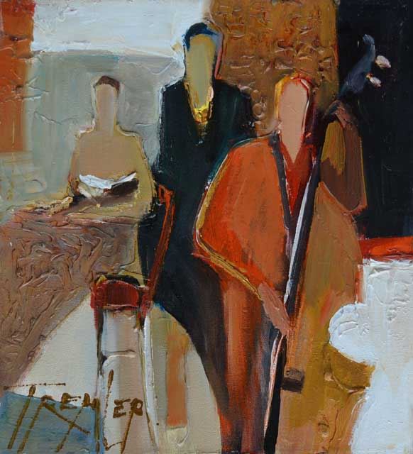 TREMLER **BAR BAND** SIGNED ORIGINAL ACRYLIC. Artist: Yuri Tremler (b. 1961) - Title: Bar Band - Medium: Acrylic on Canvas - Signature: This one-of-a-kind work is hand-signed by the artist at the bottom of the image - Image Size: Approximately 16 inches x 16 inches - Framed: Stretched and Ready to Hang or Frame - Details: This work comes with a Certificate of Authenticity - Biography: Yuri Tremler (born Yuri Trembovler) was born in the Ukraine in 1961. He attended the College of the Arts in Kharkov. He later continued his studies at the Kharkov Art & Design Academy as well as at the Gall Design School in Germany. After that, he returned to Kharkov and worked as a metal smith theater decorator. Tremler immigrated to Israel in 1996 where he worked in crafts, industrial design, interior design, jewelry design, and participated in many exhibitions. - After exploring new media to work within, he finally decided to dedicate himself almost exclusively to painting in 1998. The artist's striking and spontaneous palette clearly expresses a gamut of emotional states and moods. The images in his masterful works saturate the emotions and remain in the imagination. His works are now exhibited in galleries and art shows throughout Israel and the United States. - Warranty: Item GUARANTEED to be as described