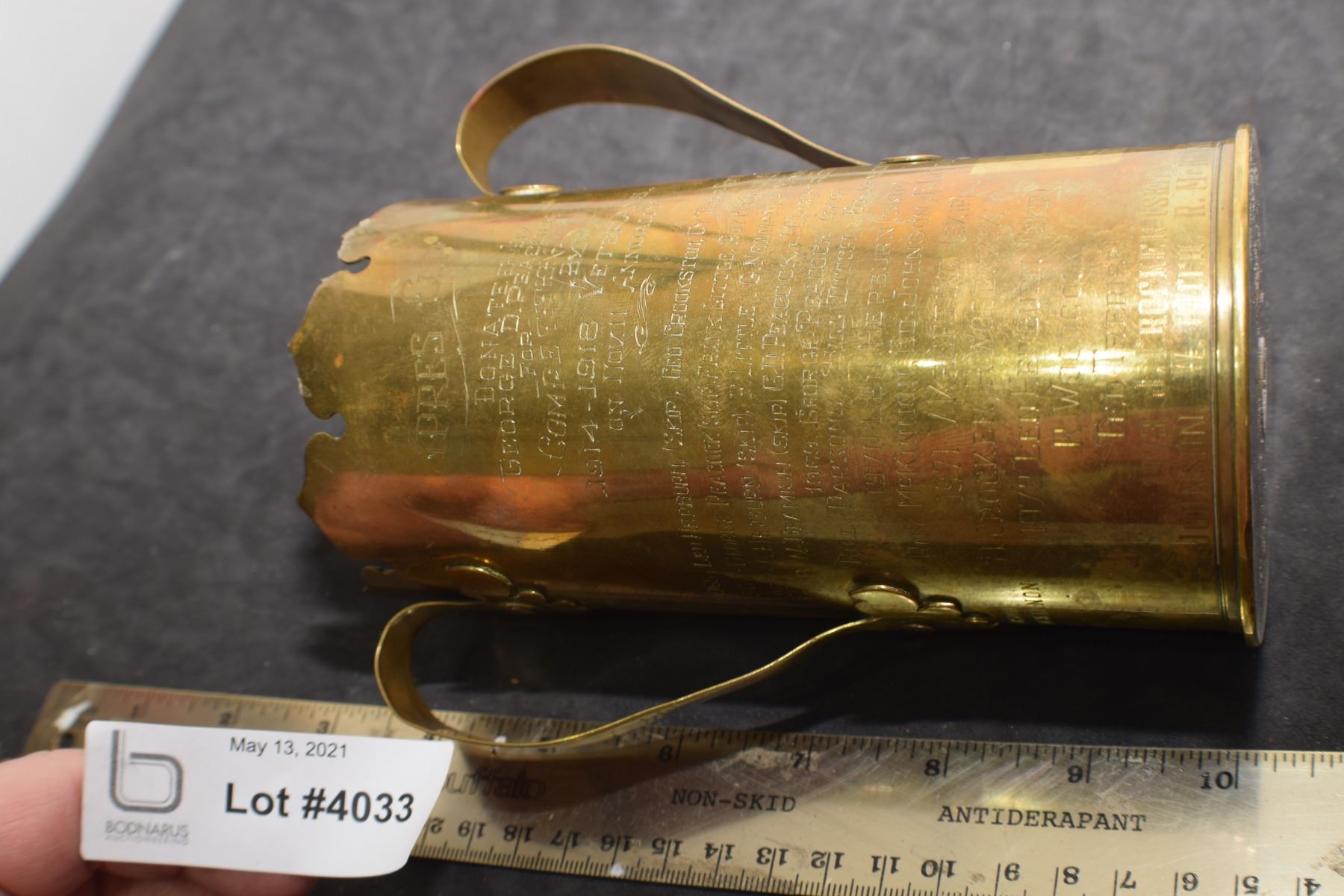 TRENCH ART BRASS SHELL CASING CURLING TROPHY YPRES CUP