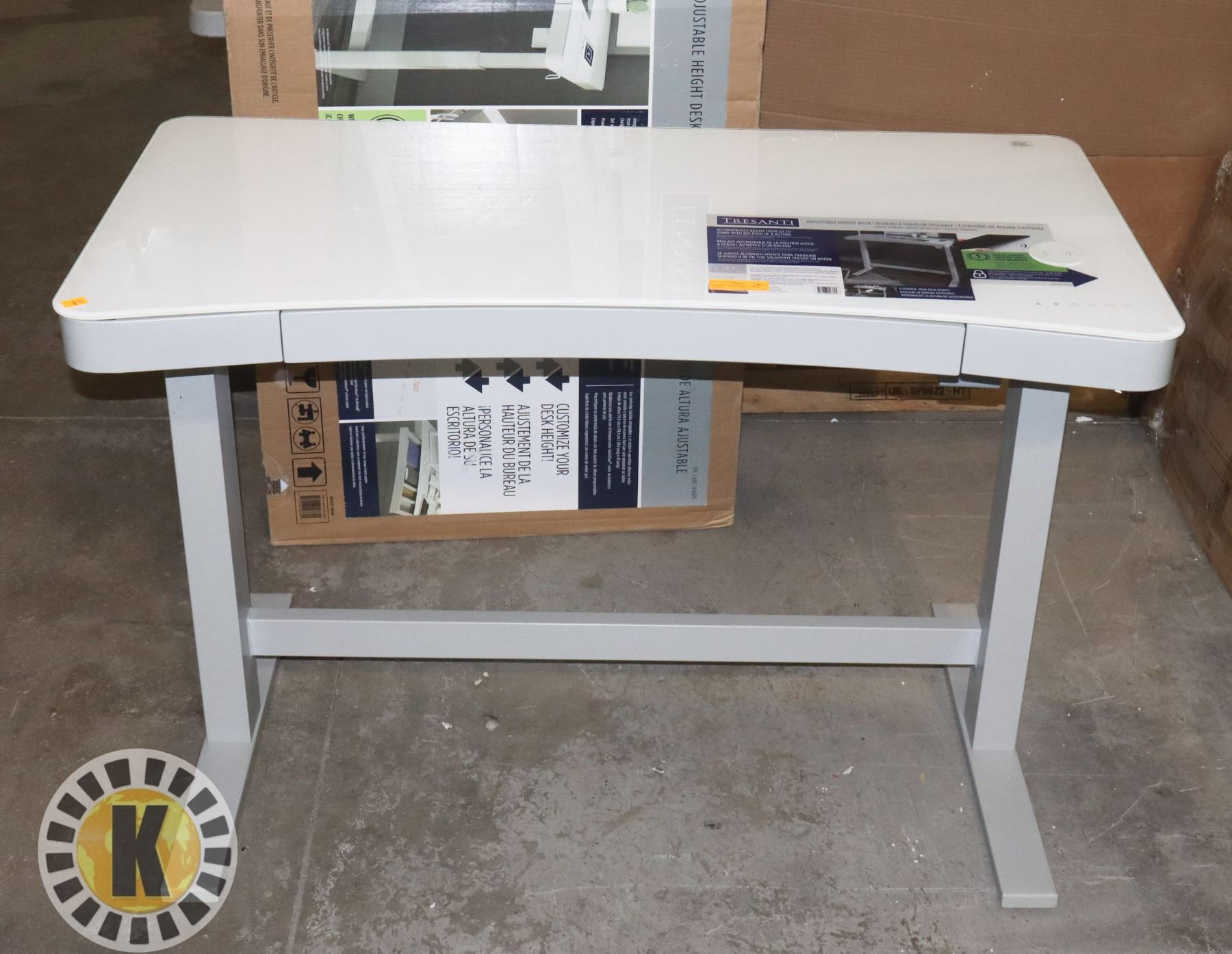 HEIGHT RANGE FROM 29.4" TO 47", TWO USB INPUTS, WIRELESS DESKTOP CHARGING STATION, DRY ERASE COMPATIBLE GLASS TOP . STORE RETURN, TESTED (WORKING)***ITEM(S) LOCATED IN LETHBRIDGE ALBERTA. TRANSPORT TO EDMONTON SERVICE WILL BE REDUCED / CANCELED UNTIL FURTHER NOTICE, CANADA POST SHIPPING IS AVAILABLE. WE CAN HOLD JEWELRY, CURRENCY, COMIC BOOK, VIDEO GAME PURCHASES UNTIL A TRANSPORT VEHICLE IS AVAILABLE ( EXPECT A MINIMUM 3 WEEK WAIT FOR THE FREE TRANSPORT). WE ARE UNABLE TO HOLD LARGER ITEMS.