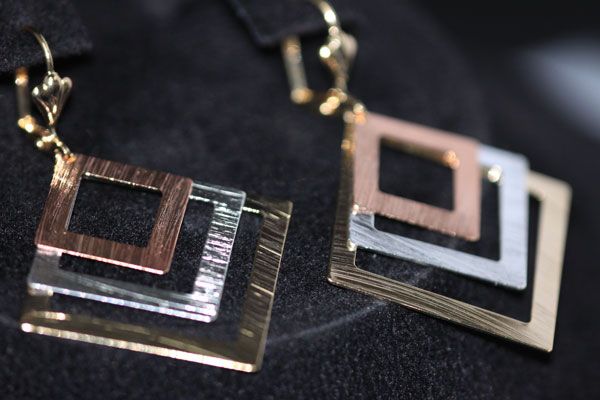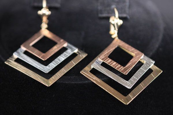 TRI-COLOR SQUARE DANGLING EARRING 14K GOLD PLATED **|**|** TRI-COLOR SQUARE DANGLING EARRING 14K GOLD PLATED; METAL BRASS; BRAZILIAN JEWELRY; 14K GOLD PLATED ; MSRP: $0