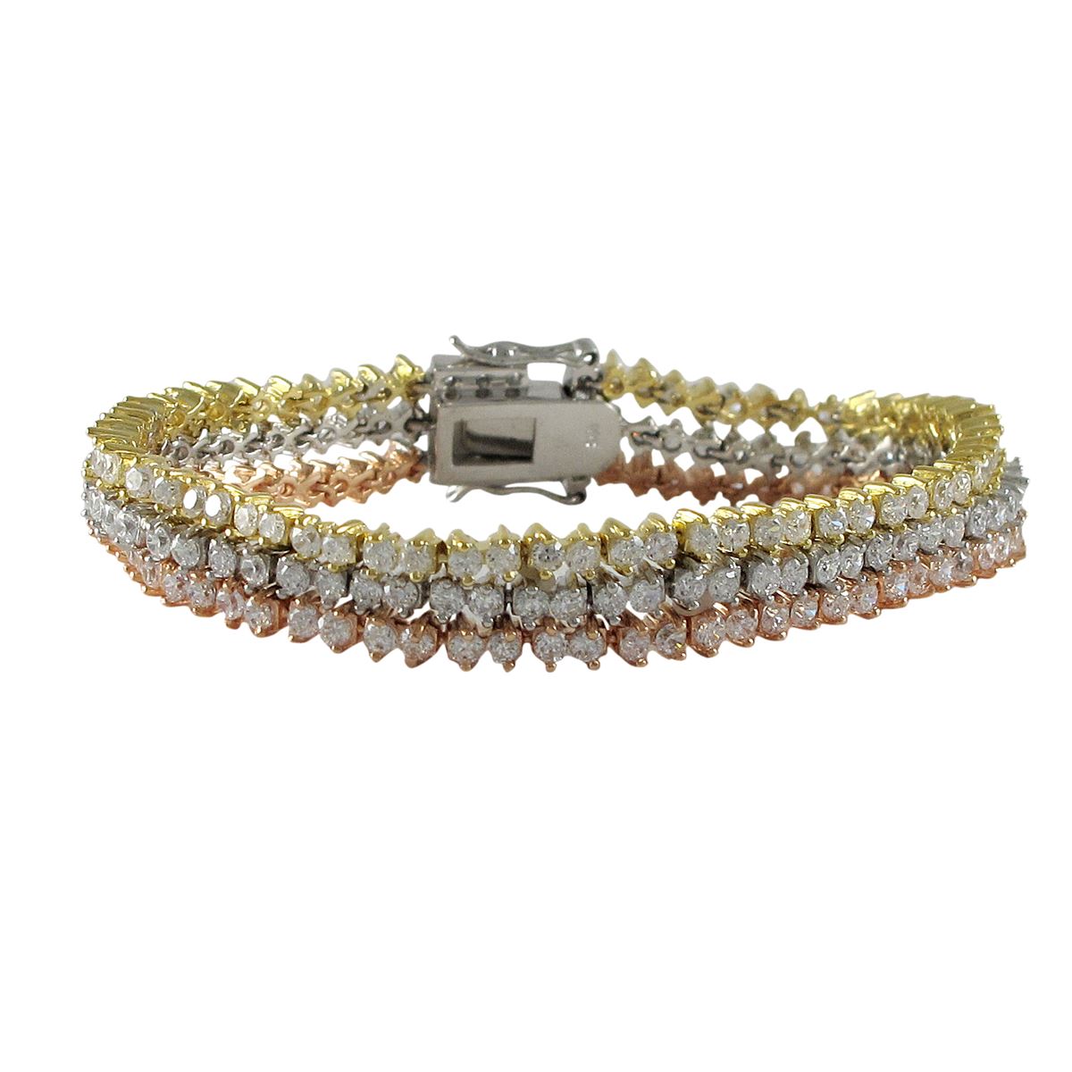 TRI-CZ 3 Row Bracelet. 7" Long