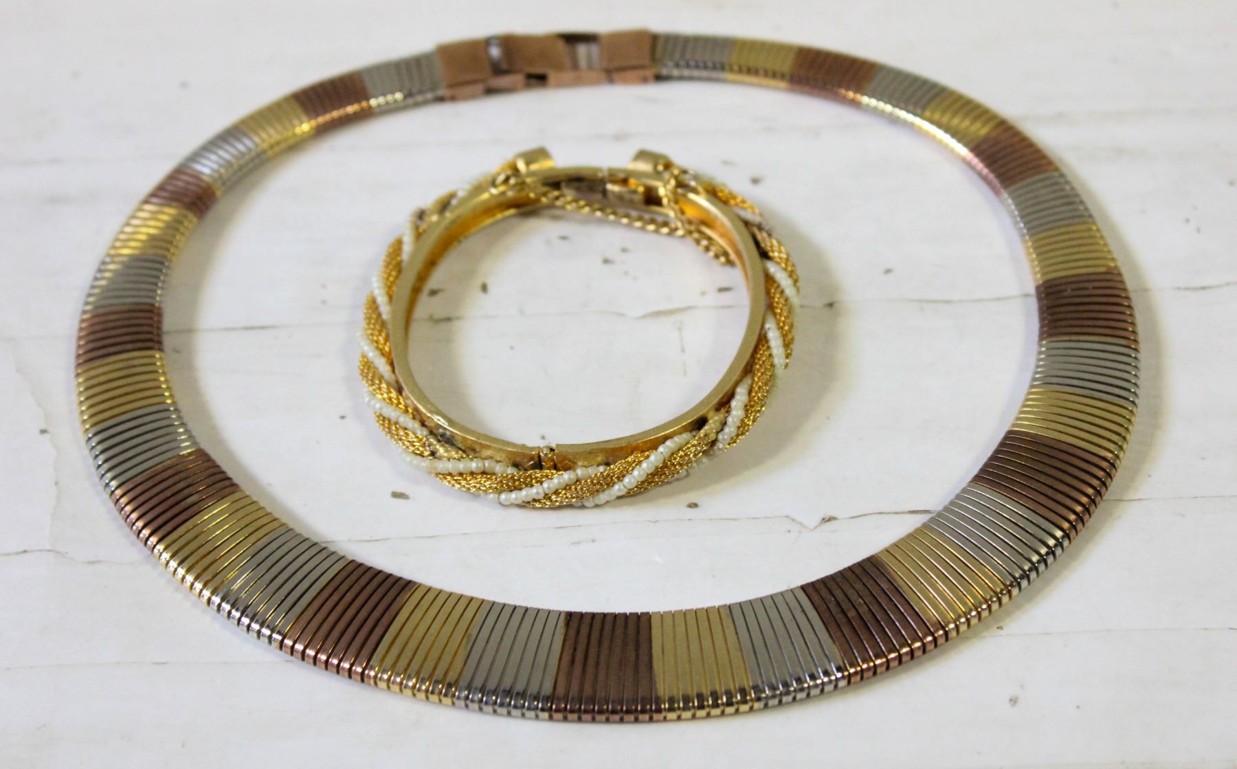 TRI-GOLD TONE NECKLACE AND BRACELET