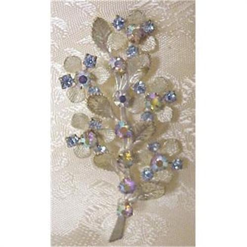 LOVELY SILVER TONE BROOCH ADORNED WITH BEAUTIFUL BLUE RHINESTONES,MAKES THIS BROOCH EXQUISITE!MEASURES ABOUT 2 1/2".