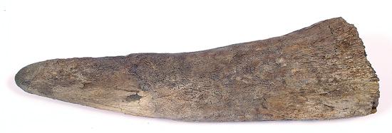 TRICERATOPS BROW HORN. Triceratops with its two long brow horns and living at the same time as T-Rex is one of the most popular dinosaurs. This 24 x 7 inch brow horn is very large and from a mature Triceratops. The horns of a Triceratops are never found without cracks and are usually found in pieces. This is an excellent dark well detailed brown specimen that was found in two pieces with a complete tip needing just some minor restoration to repair some cracks. There was a six inch section between the two pieces that was missing and has been restored by a paleontologist and mached perfectly. The grooves in the horn represent areas where blood flowed to the horn. This is a horn core. In life the horn would have been covered with keratin (like our fingernails) and would have been about 30% larger. This excellent large and heavy display fossil is 65-66 million years old and was found a private ranch in Montana.