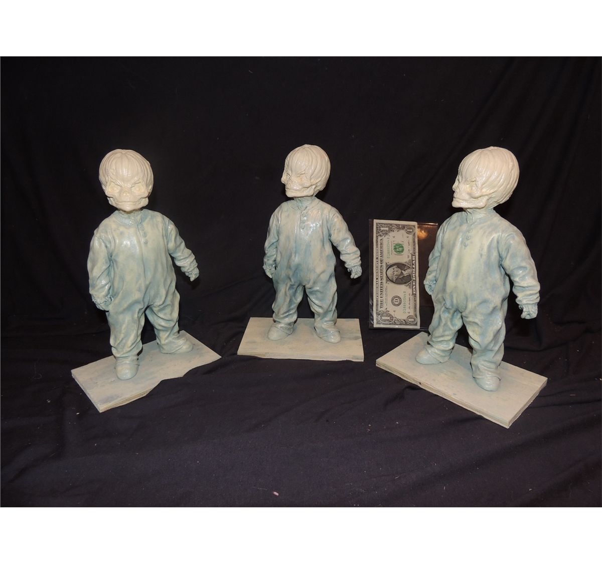 Full sculpts on wood bases cast in resin, and partially painted. Winner takes all 3!