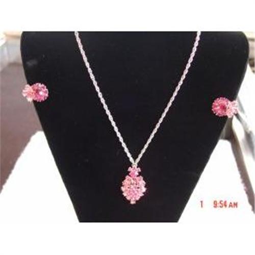 <tr><td>Title:TRIFARI 3 Piece Pink Rhinestone Necklace</td></tr>