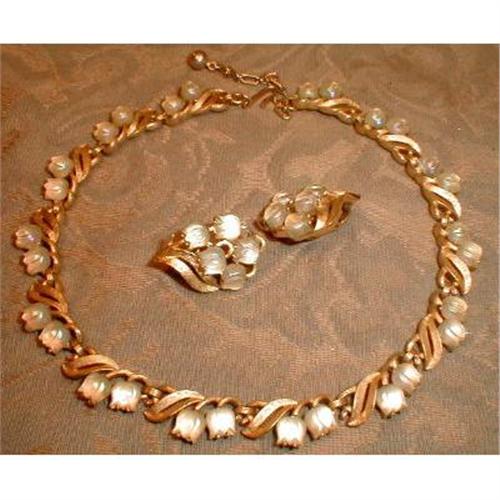 <tr><td>Title:TRIFARI Lily of the Valley NECKLACE & Ears SET</td></tr>