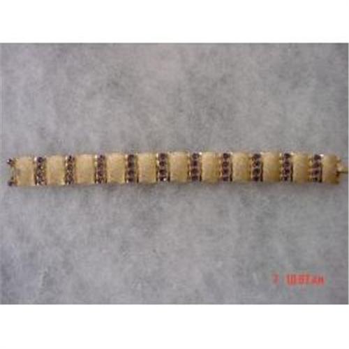 This is a wonderful Vintage Crown Trifari purple rhinestone link Bracelet! It is in brand new condition, despite being from 1940-1960s!! All the purple colored rhinestones appear original, sparkling and intact! All the 11 links of gold tone metal are also in excellent condition