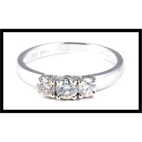 I love you today more than yesterday, and will love you even more tomorrow. That is the message of this trilogy design in 18K solid white gold.  .60 carats combined weight of the diamonds, and fine workmanship would cost the $1,450.00 original price of this ring.  You now have the opportunity to own it for just a fraction of that amount.