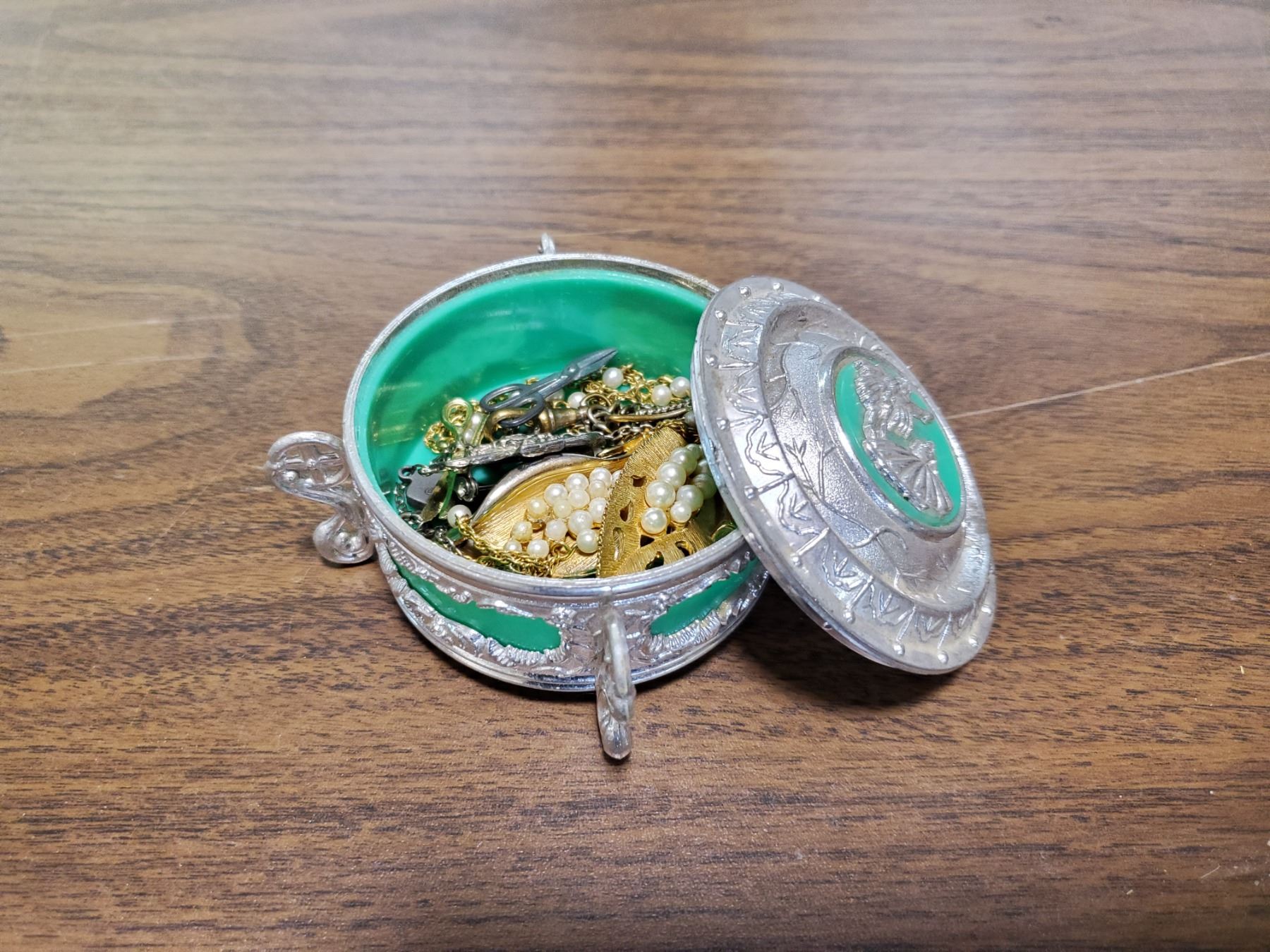 TRINKET BOX WITH VINTAGE PEARL JEWELRY