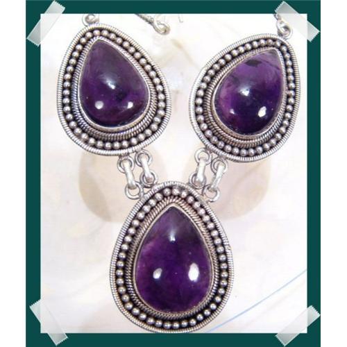 PLEASE note I only ship to Canada and USA. If paypals is used the address MUST BE CONFIRMED and signature required is used for delivery with paypals. Thanks Steven<p>as ALWAYS genuine gemstones ~ Always sterling silver ~ ALWAYS great value. The amethyst cabachons measure 45x35mm with a gram weight of 93.1. The necklace is 16" in length.