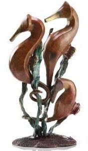 TRIPLE SEAHORSES BRONZE SCULPTURE - 9.5"H 5"W 3.5 "D - GREAT ATTENTION TO DETAIL - BEAUTIFUL FINISH - LOST WAX CAST