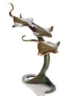 TRIPLE STING RAYS BRONZE SCULPTURE - 9.5"H 9"W 6 "D - GREAT ATTENTION TO DETAIL - BEAUTIFUL FINISH - LOST CAST WAX