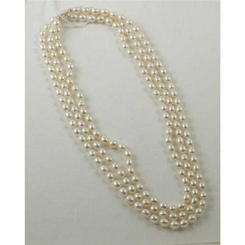 NECKLACE: Lady's triple stranded freshwater pearl choker with sterling silver clasp. No appraisal is included with this lot.