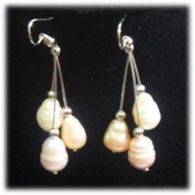 TRIPLE TEARDROP TRICOLOR PEARL DANGLING EARRINGS **|**|** TRIPLE TEARDROP TRICOLOR PEARL DANGLING EARRINGS ; MSRP: $100