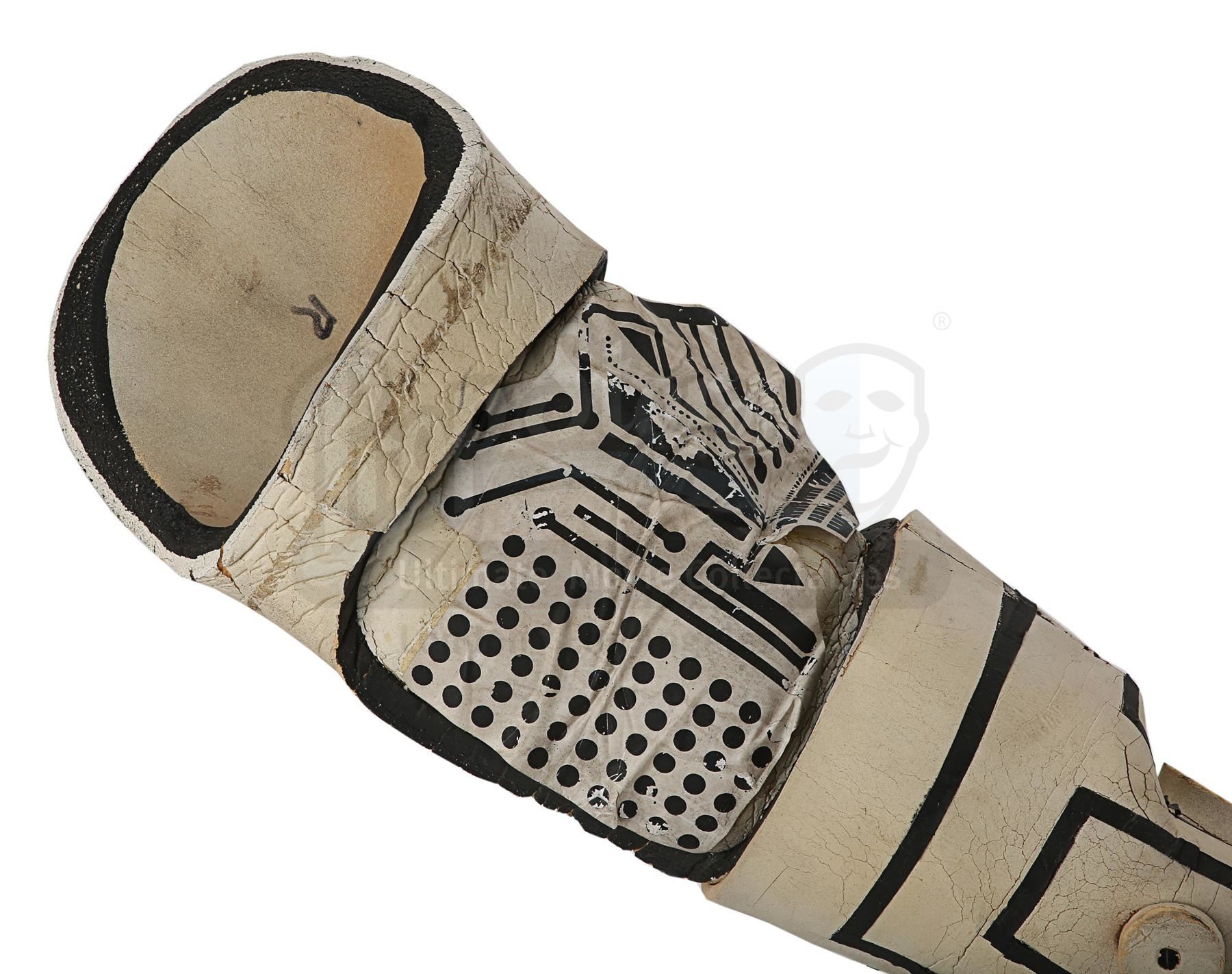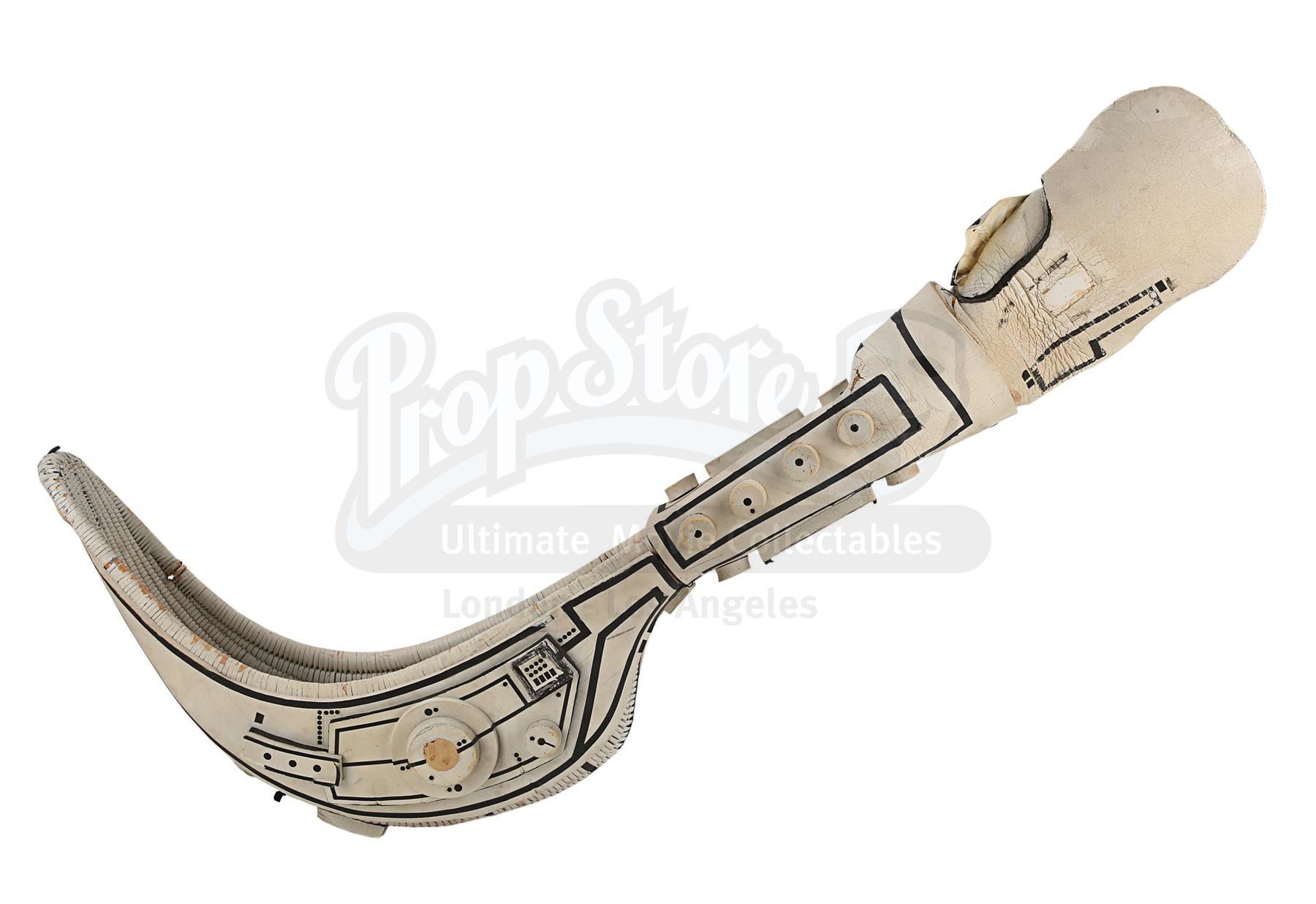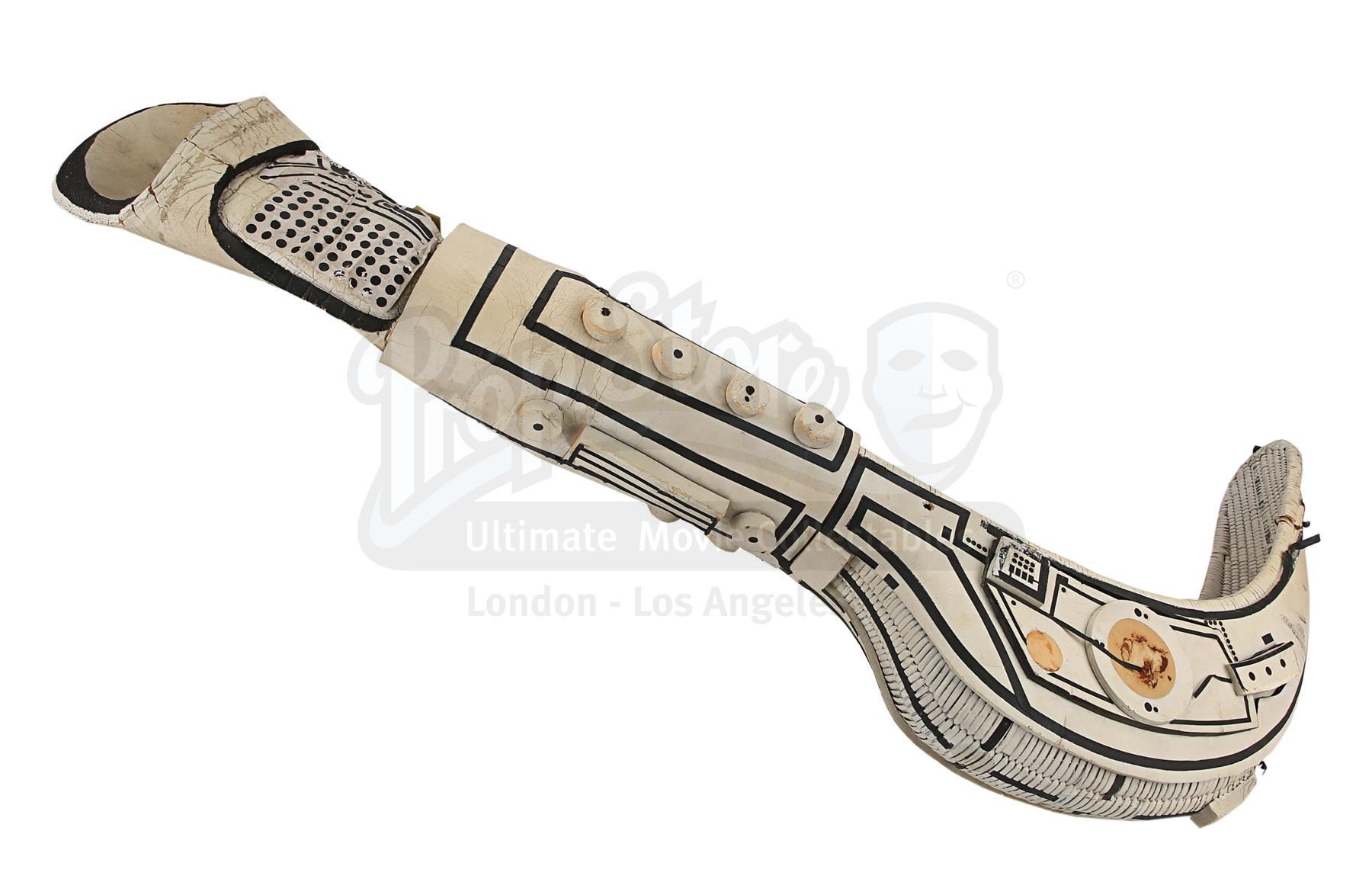 A cesta arm attachment from Steven Lisberger's sci-fi film TRON. Cesta arm attachments were used by Kevin Flynn (Jeff Bridges) and Crom (Peter Jurasik) in the "ring game", based on the Filipino sport Jai Alai, in which participants had to use the cestas ۠translated from Spanish word for "basket" ۠to launch a ball at the opposing player's platform in an attempt to make them fall and be "derezzed".