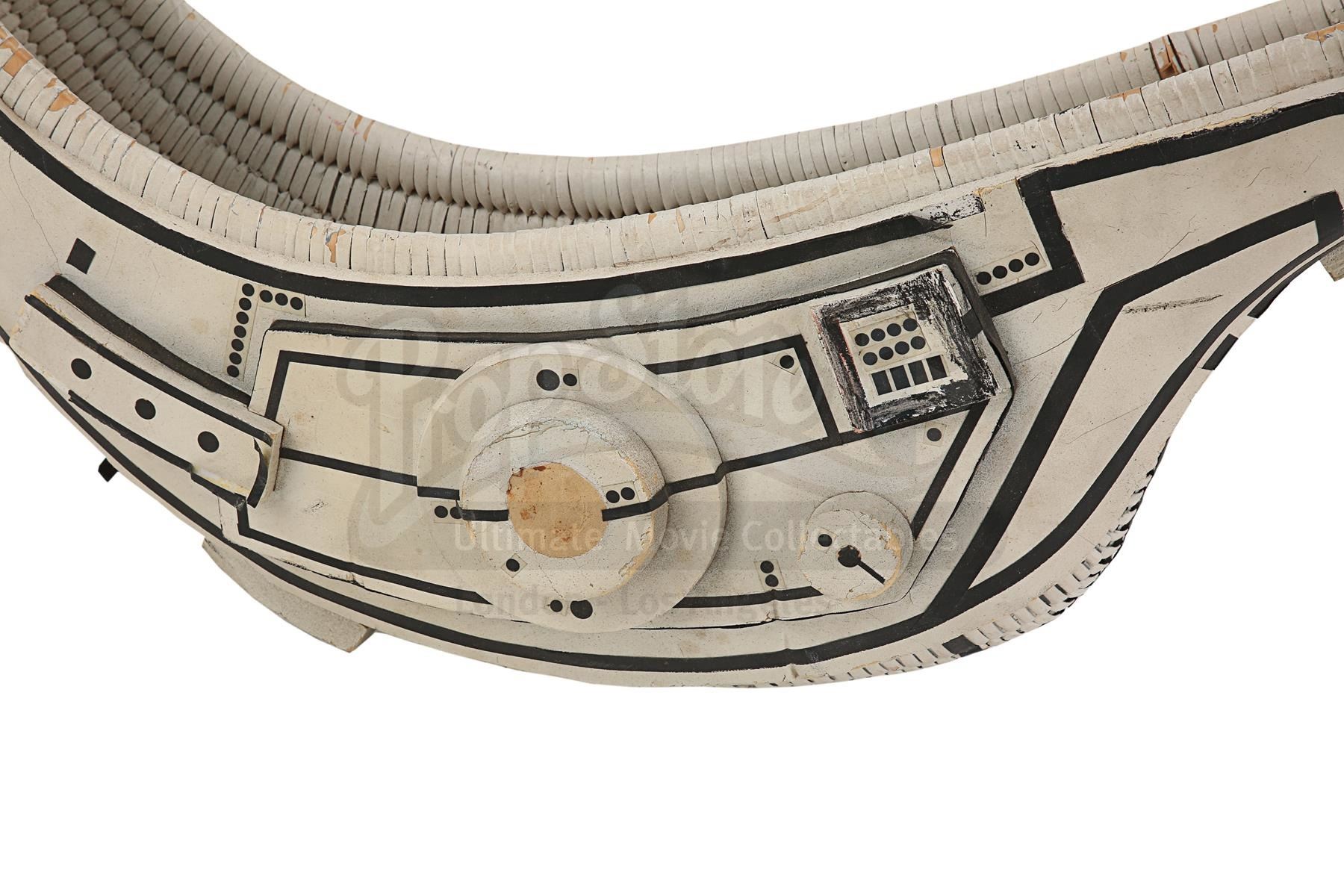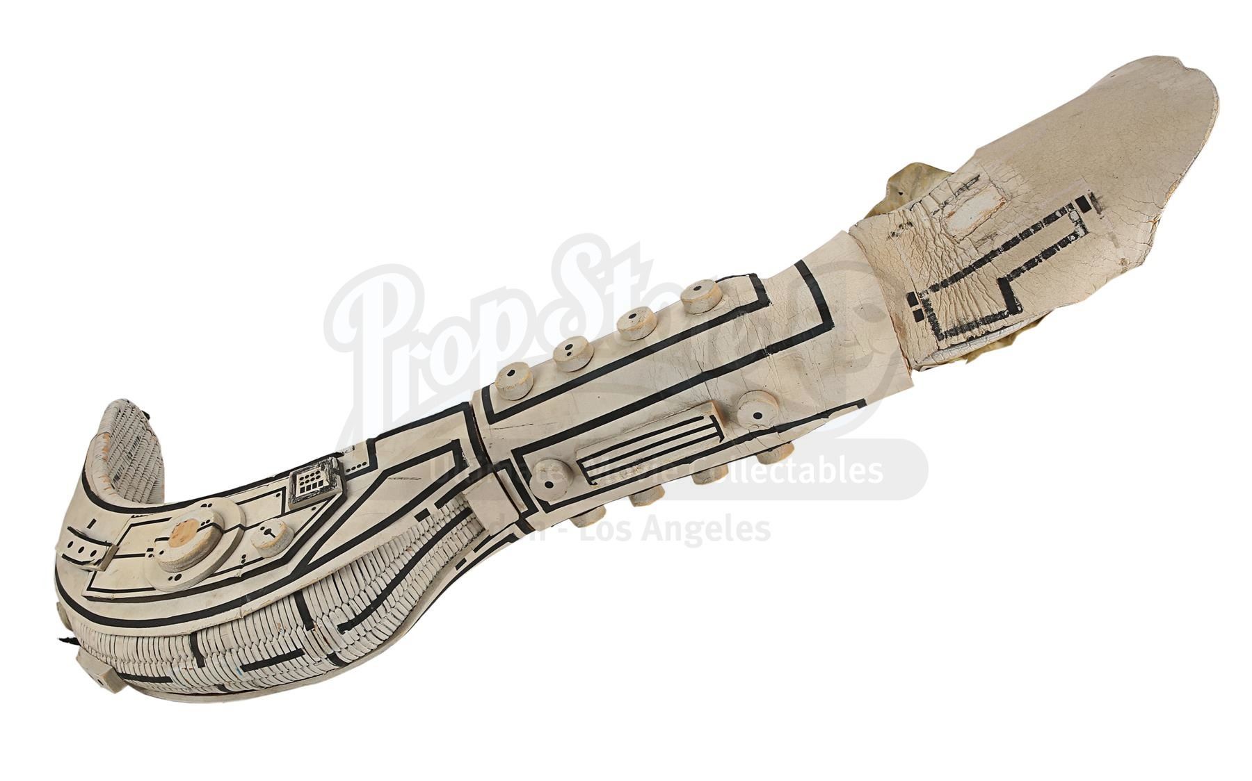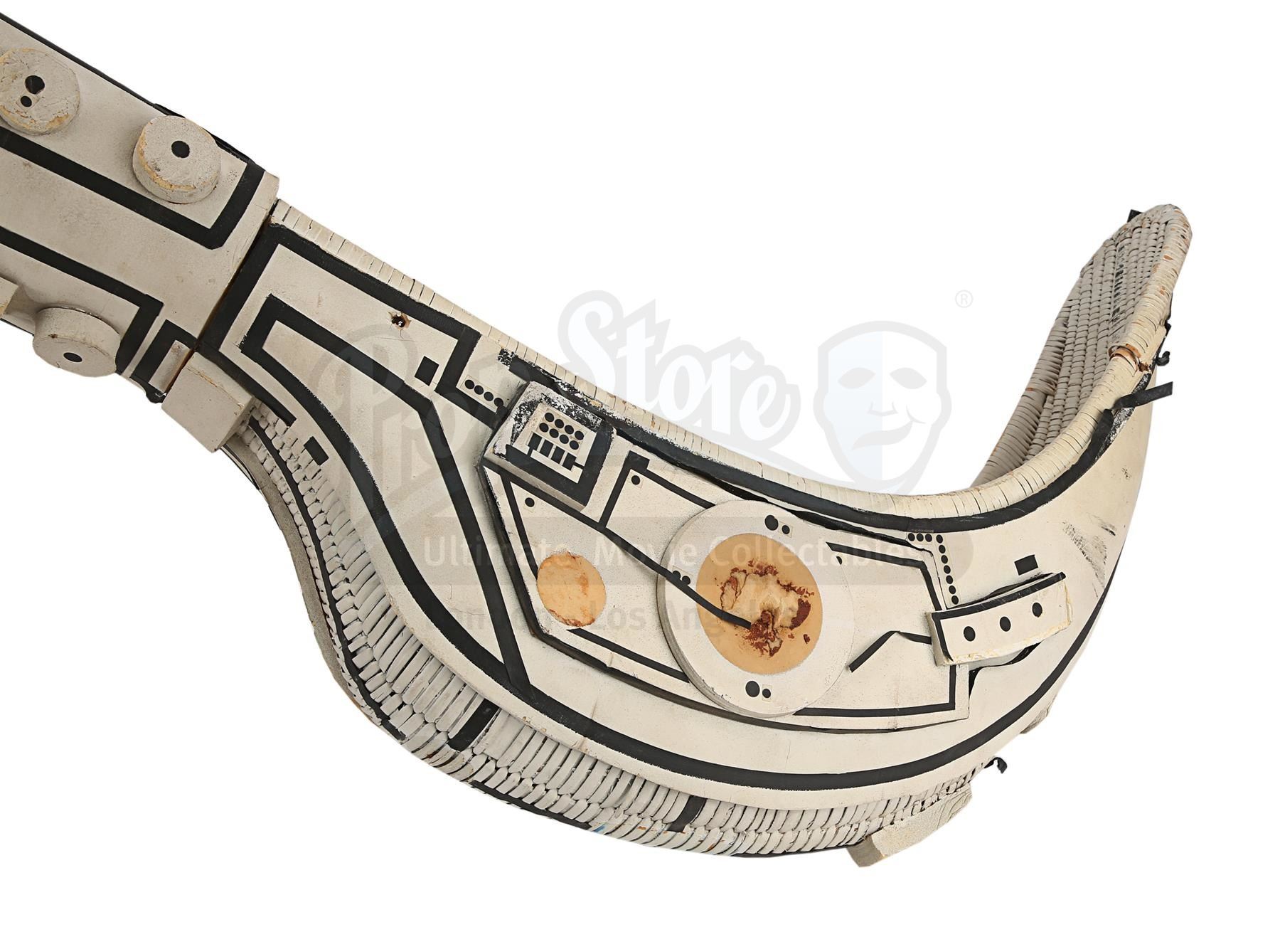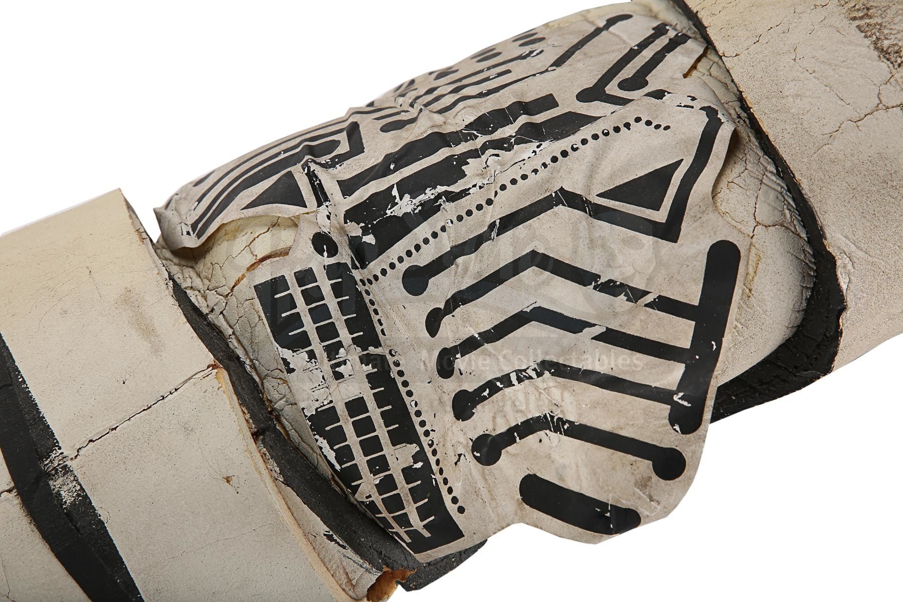 A cesta arm attachment from Steven Lisberger's sci-fi film TRON. Cesta arm attachments were used by Kevin Flynn (Jeff Bridges) and Crom (Peter Jurasik) in the "ring game", based on the Filipino sport Jai Alai, in which participants had to use the cestas ۠translated from Spanish word for "basket" ۠to launch a ball at the opposing player's platform in an attempt to make them fall and be "derezzed".