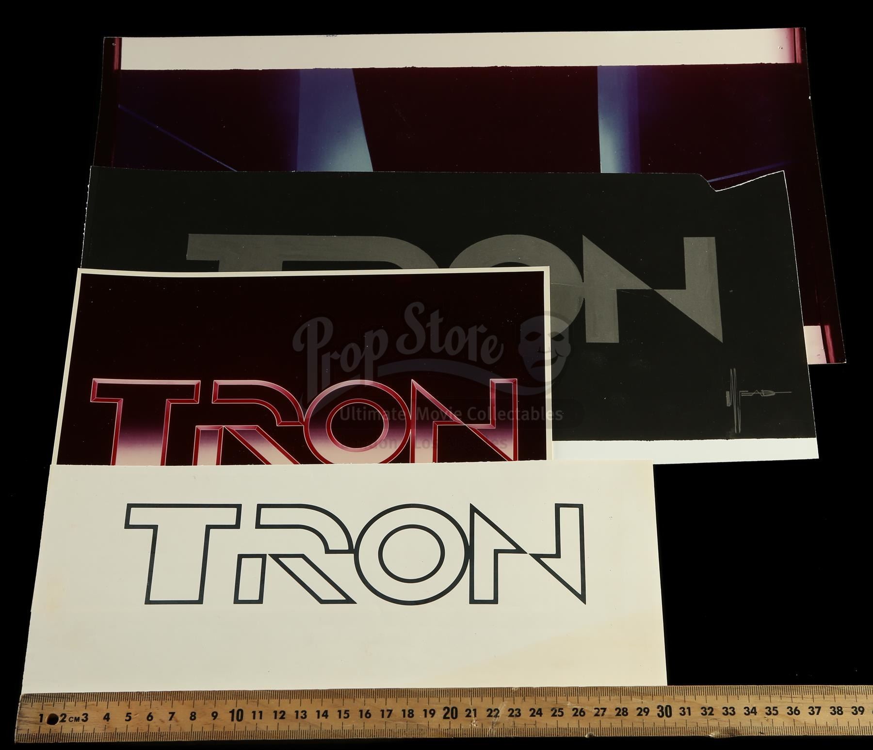 A set of printed main title concept art from Steven Lisberger's sci-fi film Tron.