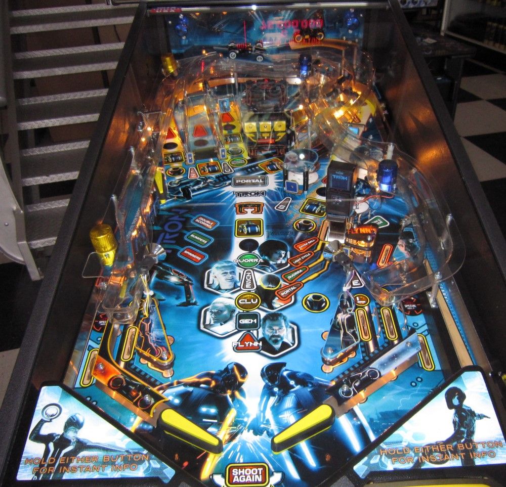 The TRON: Legacy Pinball features an incredible 3D backglass that brings the film’s characters and story to life. TRON: Legacy Pinball also features exciting sound bites from the film’s main characters, as well music from the film’s original score. This pinball is brand new It comes with the new version translite and as a bonus the priginal translite version is included too.