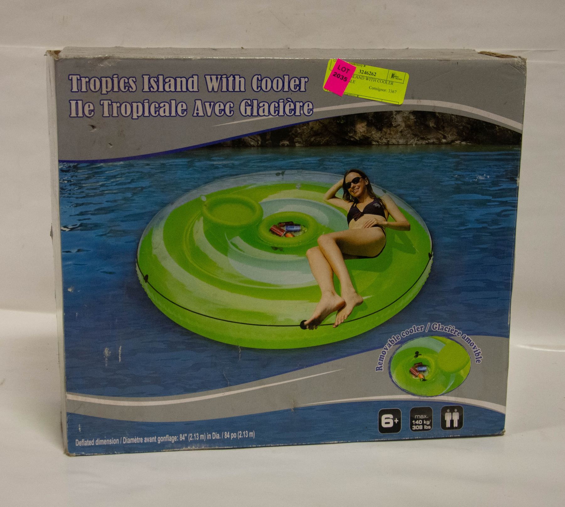 TROPICS ISLAND WITH COOLER INFLATABLE **ALL ITEMS MUST BE REMOVED BY 5PM SATURDAY, AUGUST 24th 2024. ALL REMAINING ITEMS WILL BE SUBJECT TO A $6.00 PER DAY STORAGE CHARGE. ANY ITEMS REMAINING AFTER MONDAY, SEPTEMBER 16TH 2024 WILL BE CONSIDERED FORFEITED. NO REFUNDS WILL BE ISSUED FOR FORFEITED ITEMS. TO SCHEDULE A PICK UP APPOINTMENT CLICK HERE