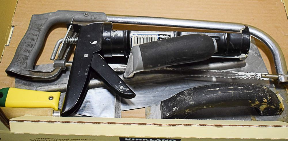 TROWELS, CAULKING GUN AND PUTTY KNIVES