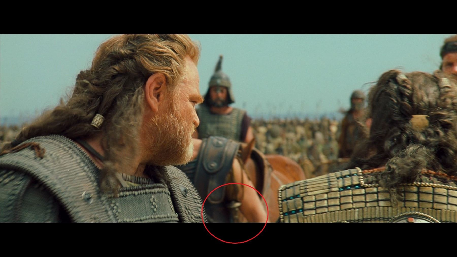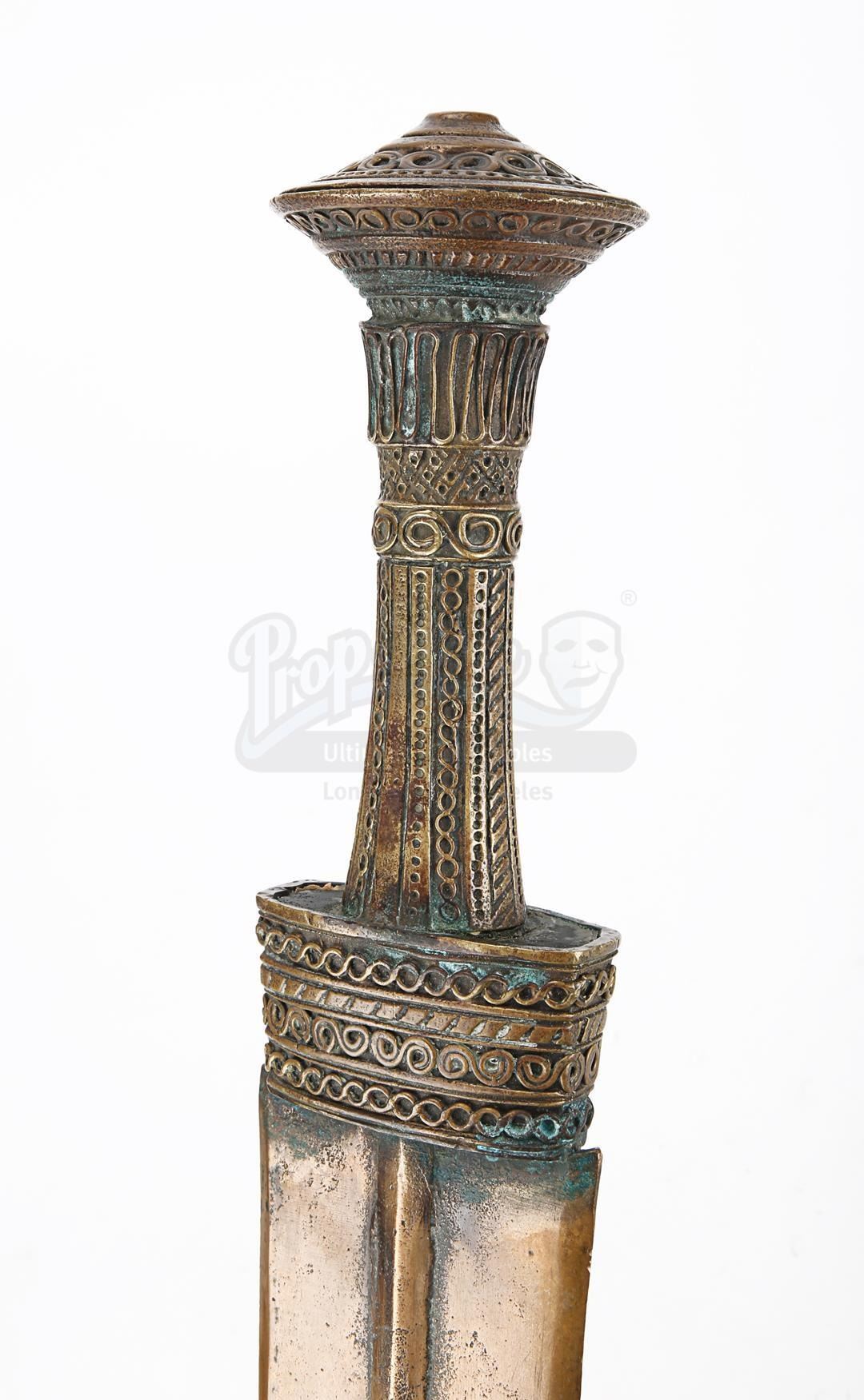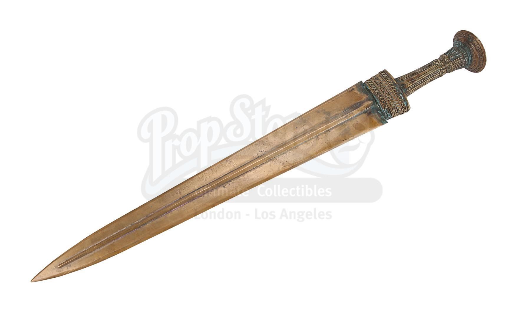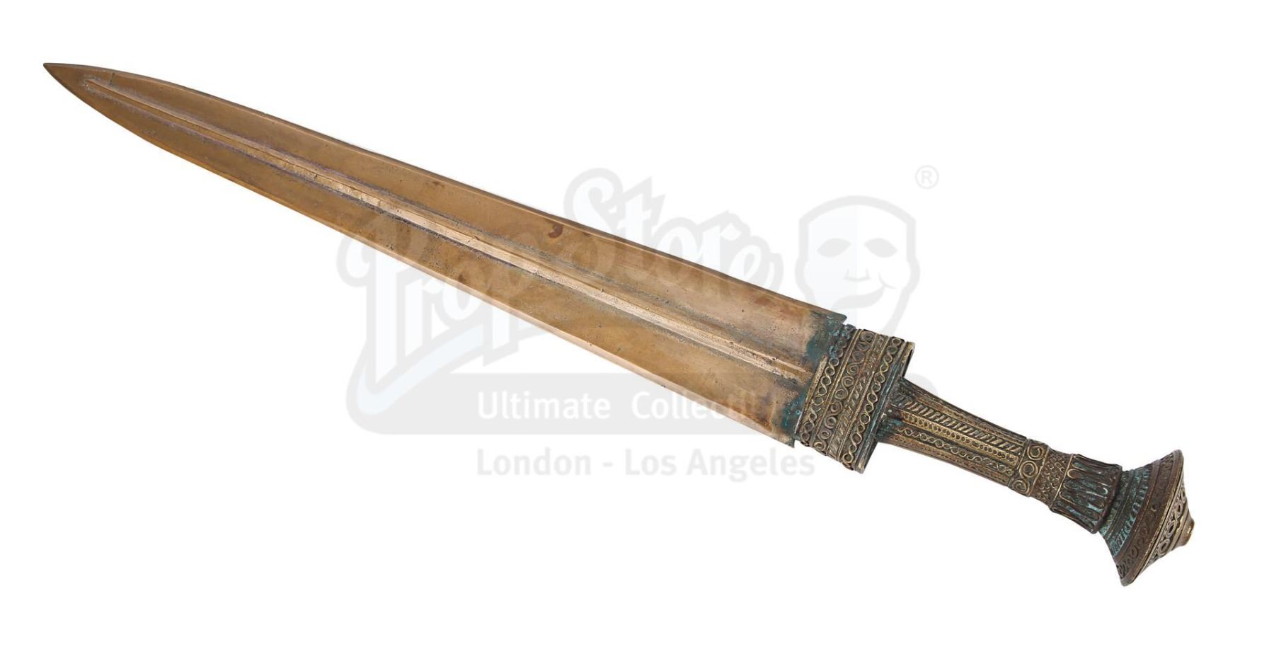 Odysseus' (Sean Bean) hero sword from Wolfgang Petersen's mythical epic Troy. Odysseus carried his sword into battle as the Greeks tried to take the city of Troy. The sword can also be seen in on-set stills of the character.