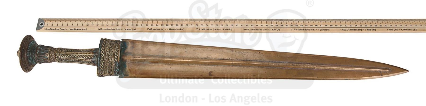 [US] These lots are currently located in Prop Store’s Los Angeles facility and will ship directly to the buyer from the Los Angeles facility. For buyers within the EEC (private individuals or registered businesses), no VAT will be charged by Prop Store on the hammer price; 20% VAT will be due on the Buyer’s premium. For buyers outside the EEC, no VAT will be charged by Prop Store.