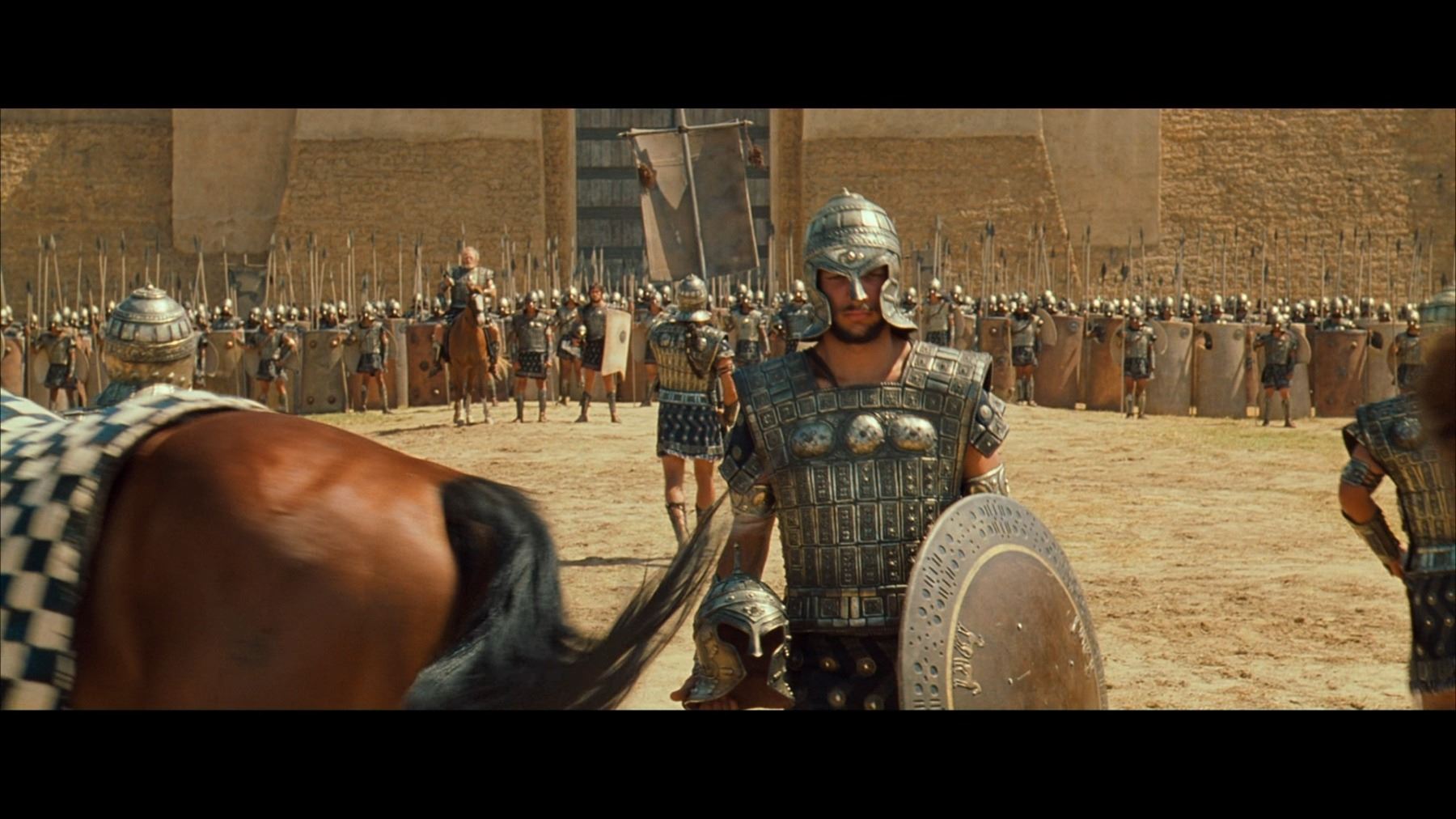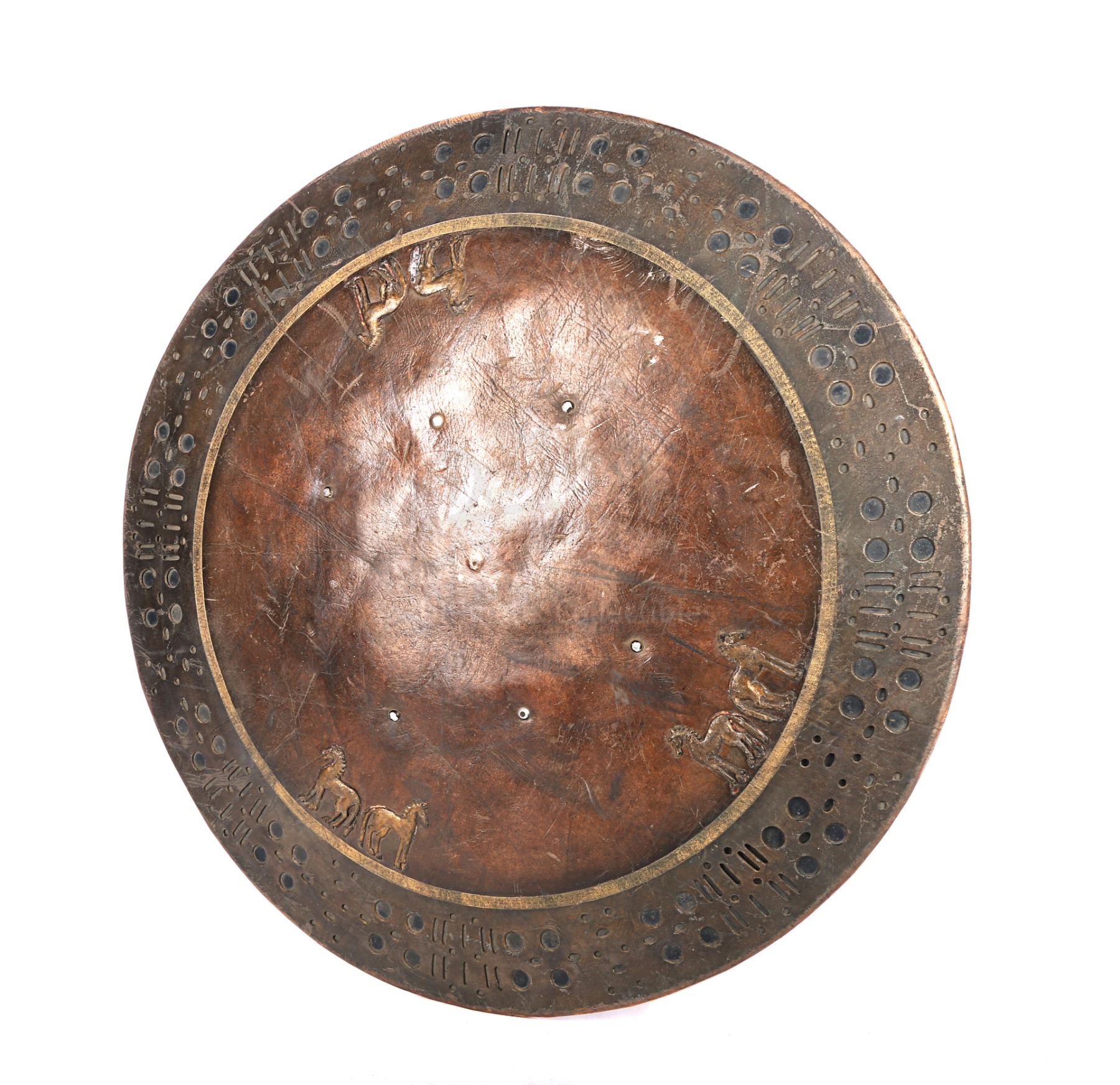 Paris' (Orlando Bloom) shield from Wolfgang Petersen's mythical epic Troy. Paris used his shield while fighting for Helen's (Diane Kruger) hand against her husband Menelaus (Brendan Gleeson) outside the walls of Troy, and while cowering behind his brother Hector (Eric Bana) after being overpowered.