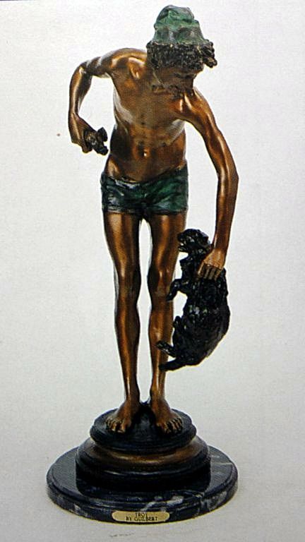 "TROY" BRONZE SCULPTURE - AFTER GUIBERT - MUSEUM BROWN FINISH - MOUNTED ON A FINE ITALIAN MARBLE BASE - BEAUTIFULLY DETAILED - SIGNED - MINT CONDITION - 32"H X 11"W - LOST WAX CAST BRONZE