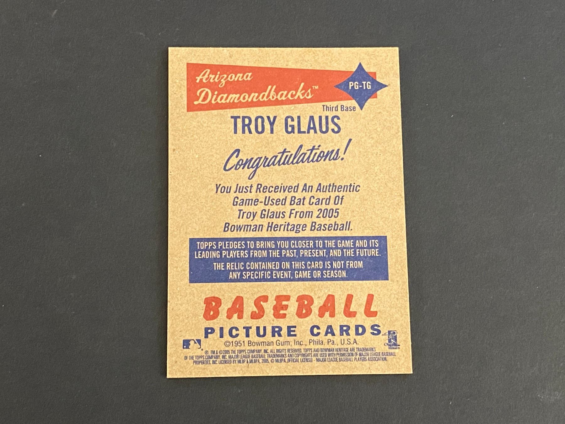 TROY GLAUS ARIZONA DIAMONSBACKS GAME USED BAT CARD