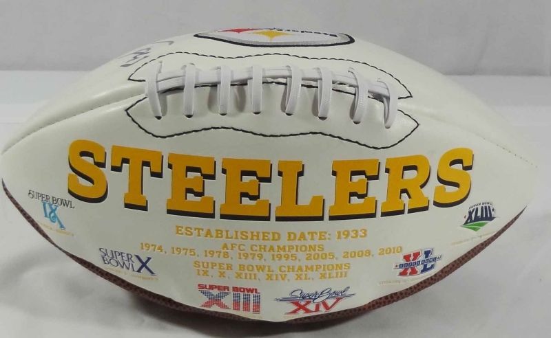 OFFICIAL NFL STEELERS SUPER BOWL FOOTBALL SIGNED BY TROY POLAMALU WITH BLACK SHARPIE. NO COA. EST 150.00-175.00